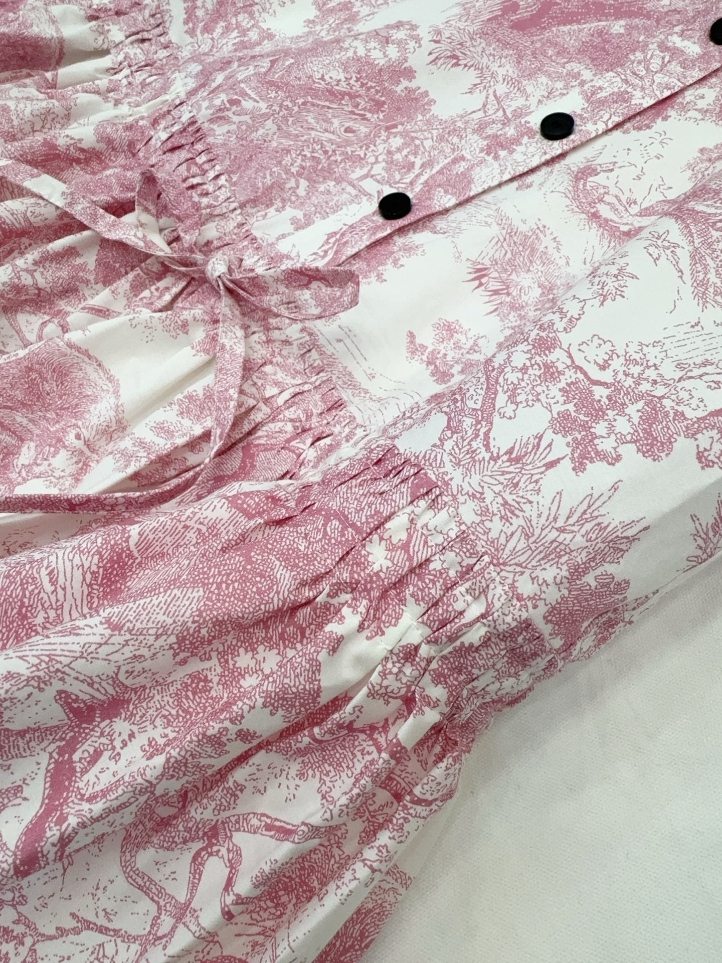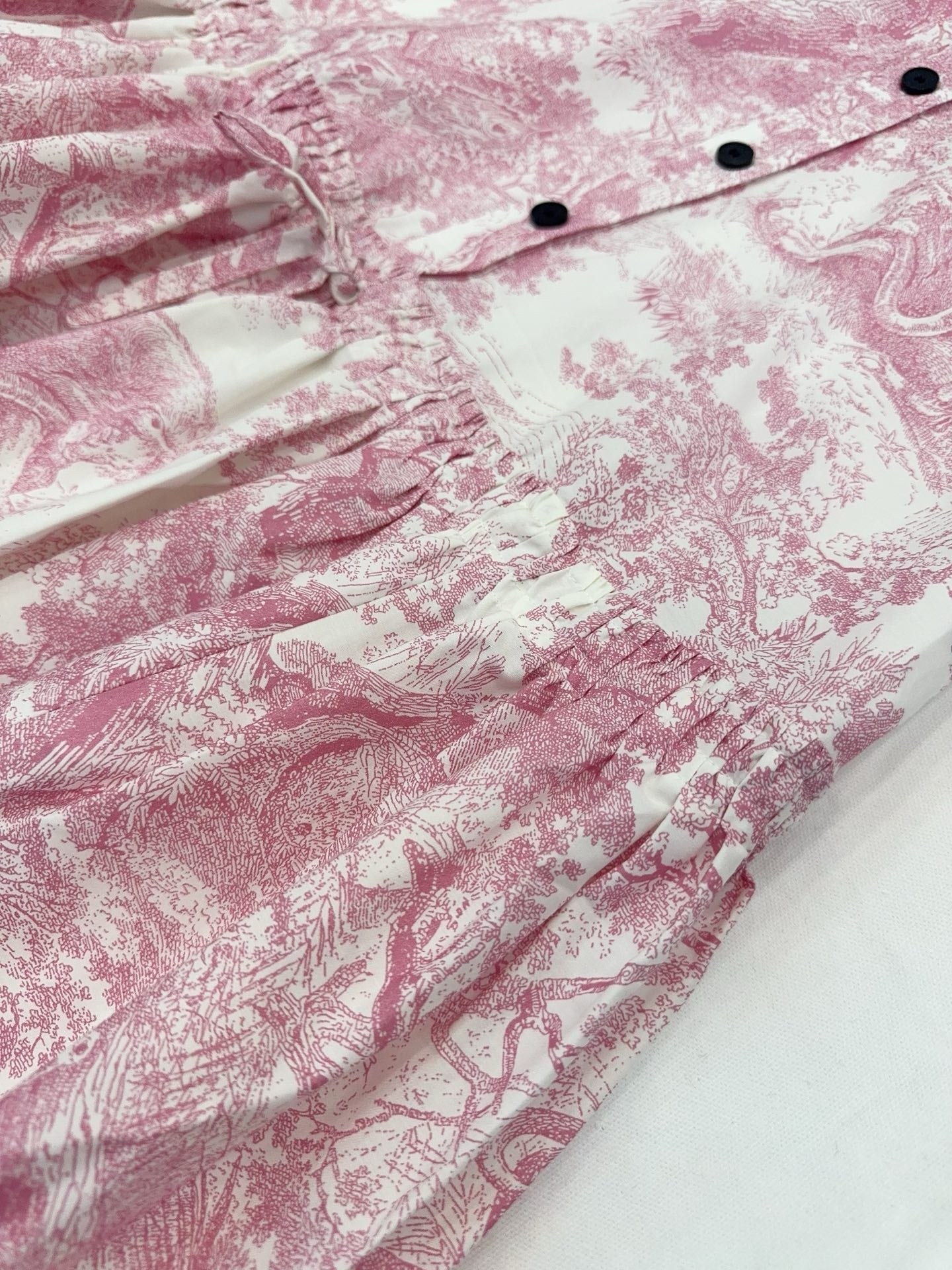CD 25 Jouy Print Sleeveless Dress Pink Silk Cotton