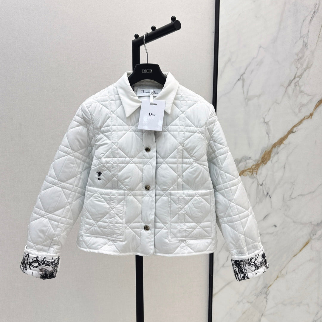 CD 25 Plaid Quilted Lapel Set White Cotton