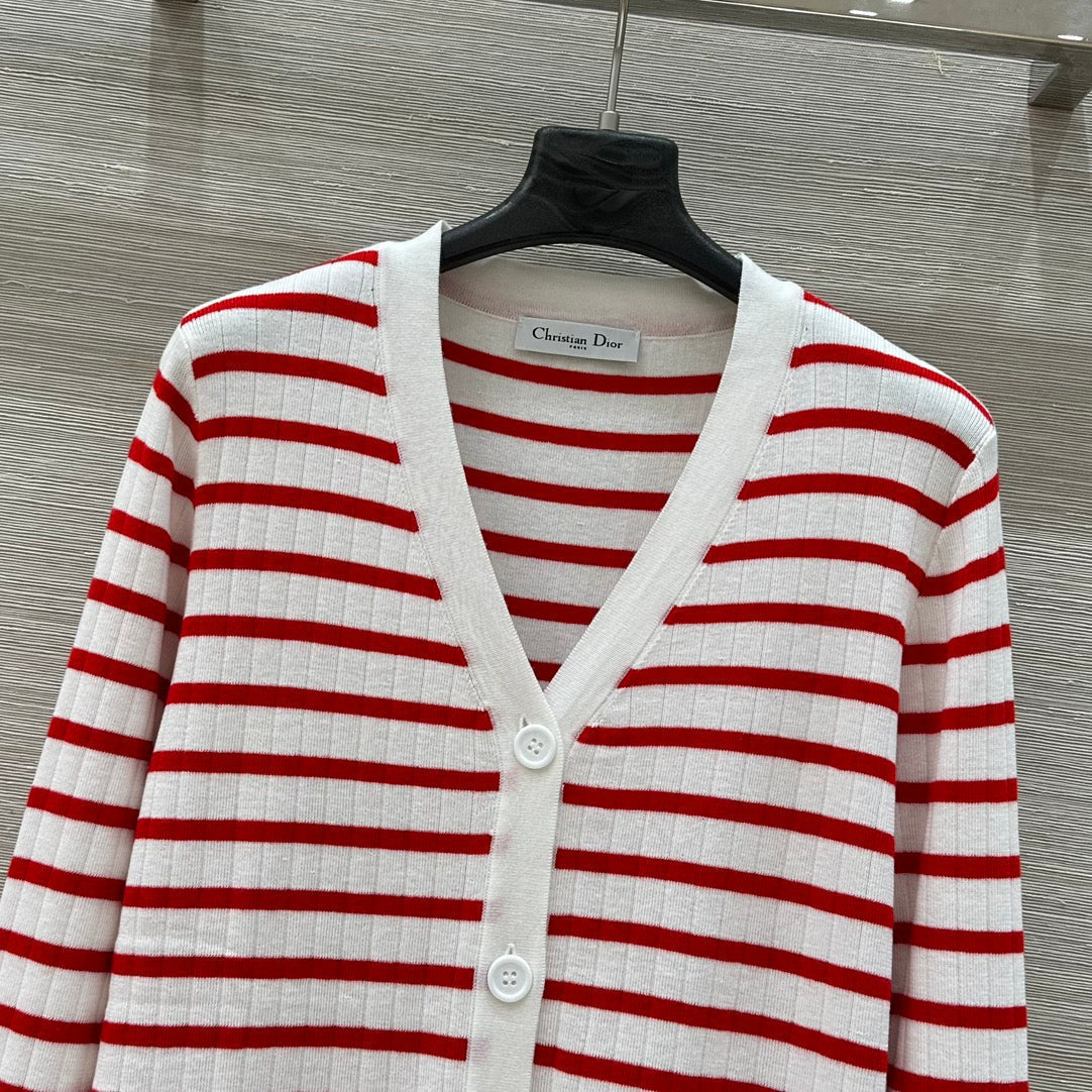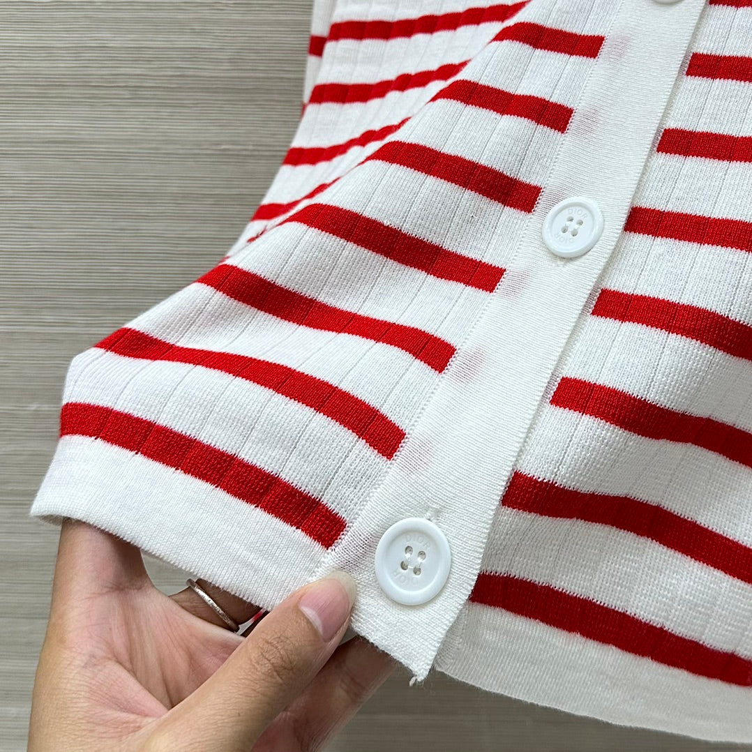 CD 25 Striped knitted Cardigan Red White Cotton