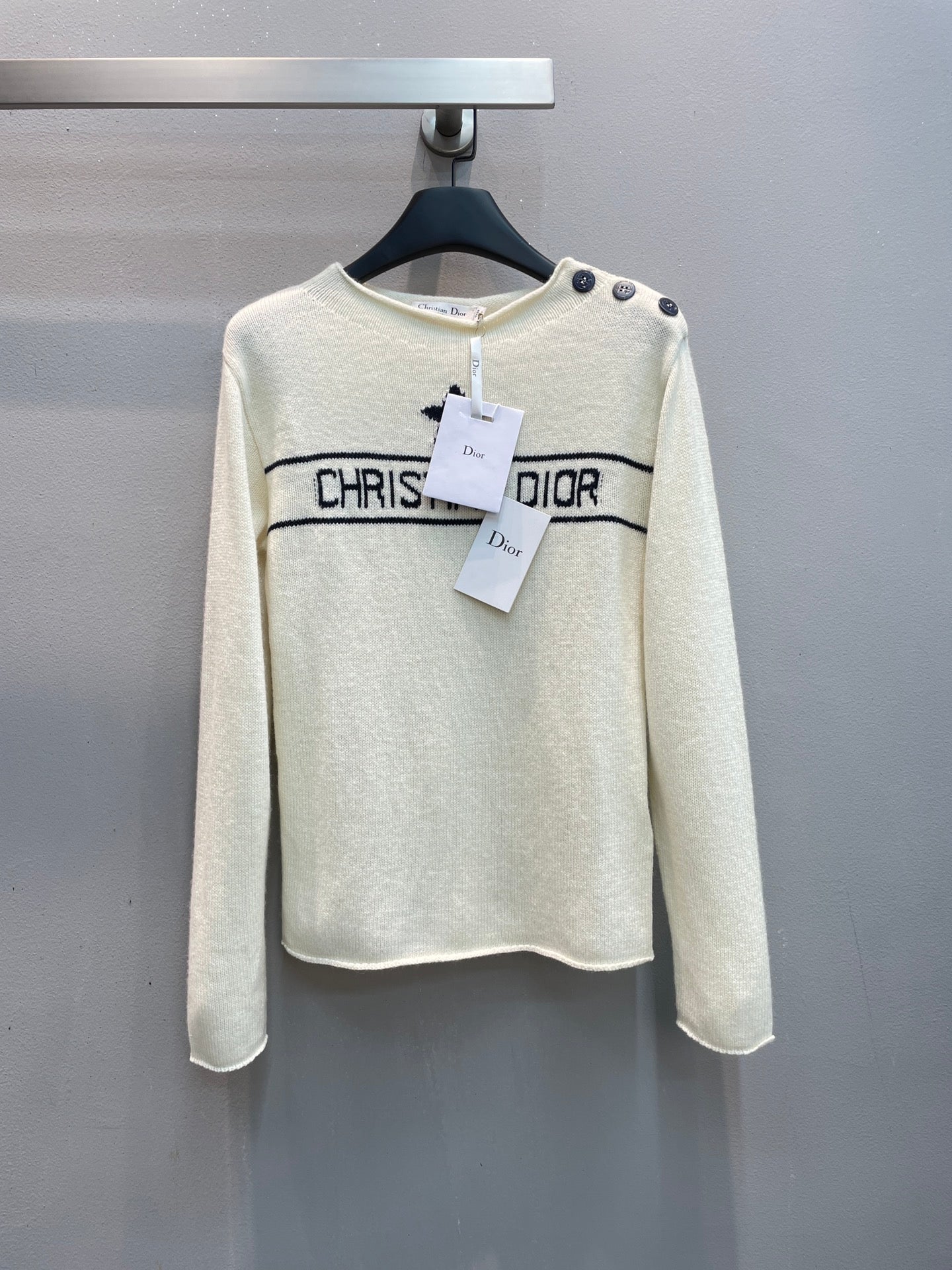 CD 25 Sweater White With Buttons On The Shoulder Cashmere