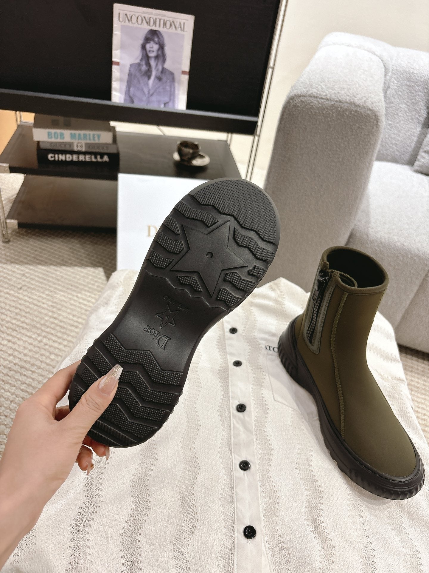 CD Ankle Boots Brown Moss Green Elastic Fabric