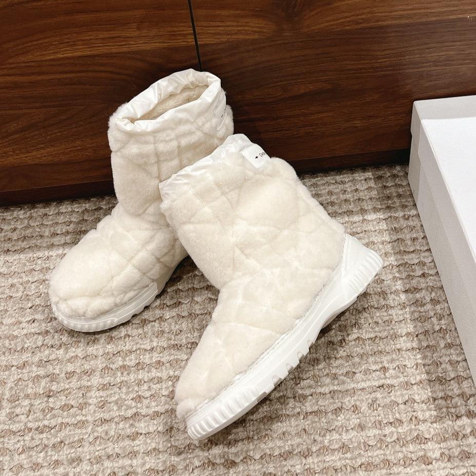 CD Ankle Boots White Fleece And Windbreaker Fabric