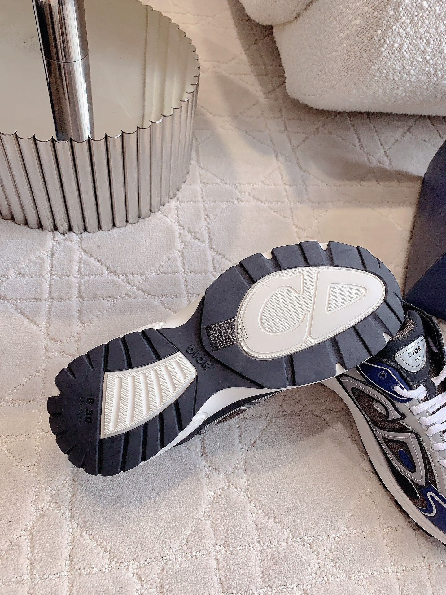 CD B30 Sneaker Brown Blue Mix Grey Polyester Mesh Fabric And Calfskin