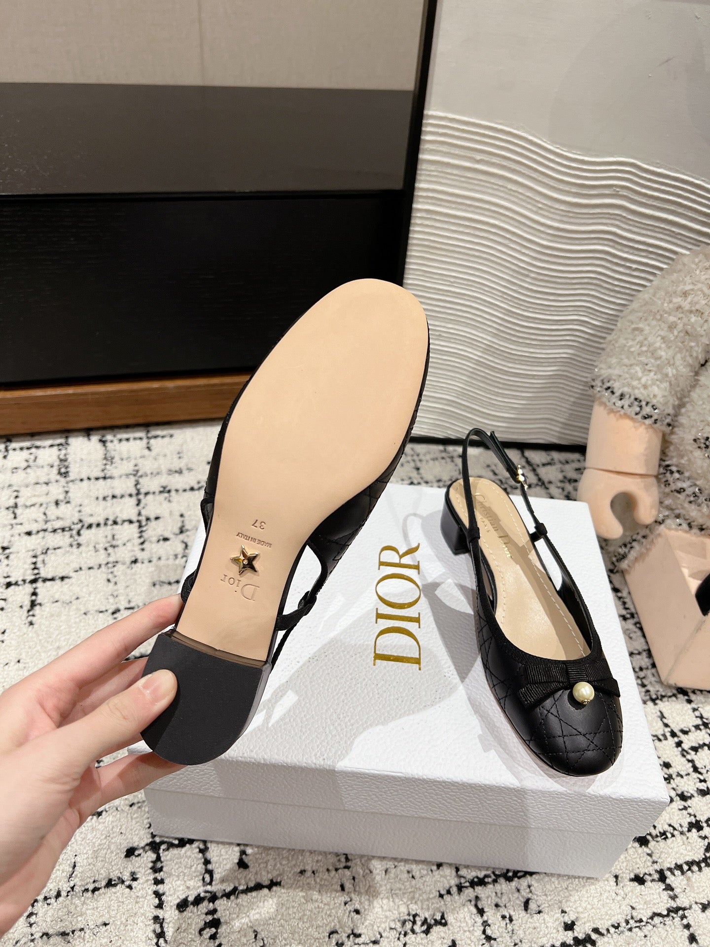 CD Ballet Slingback Pump 30mm In Black Quilted Calfskin 997043