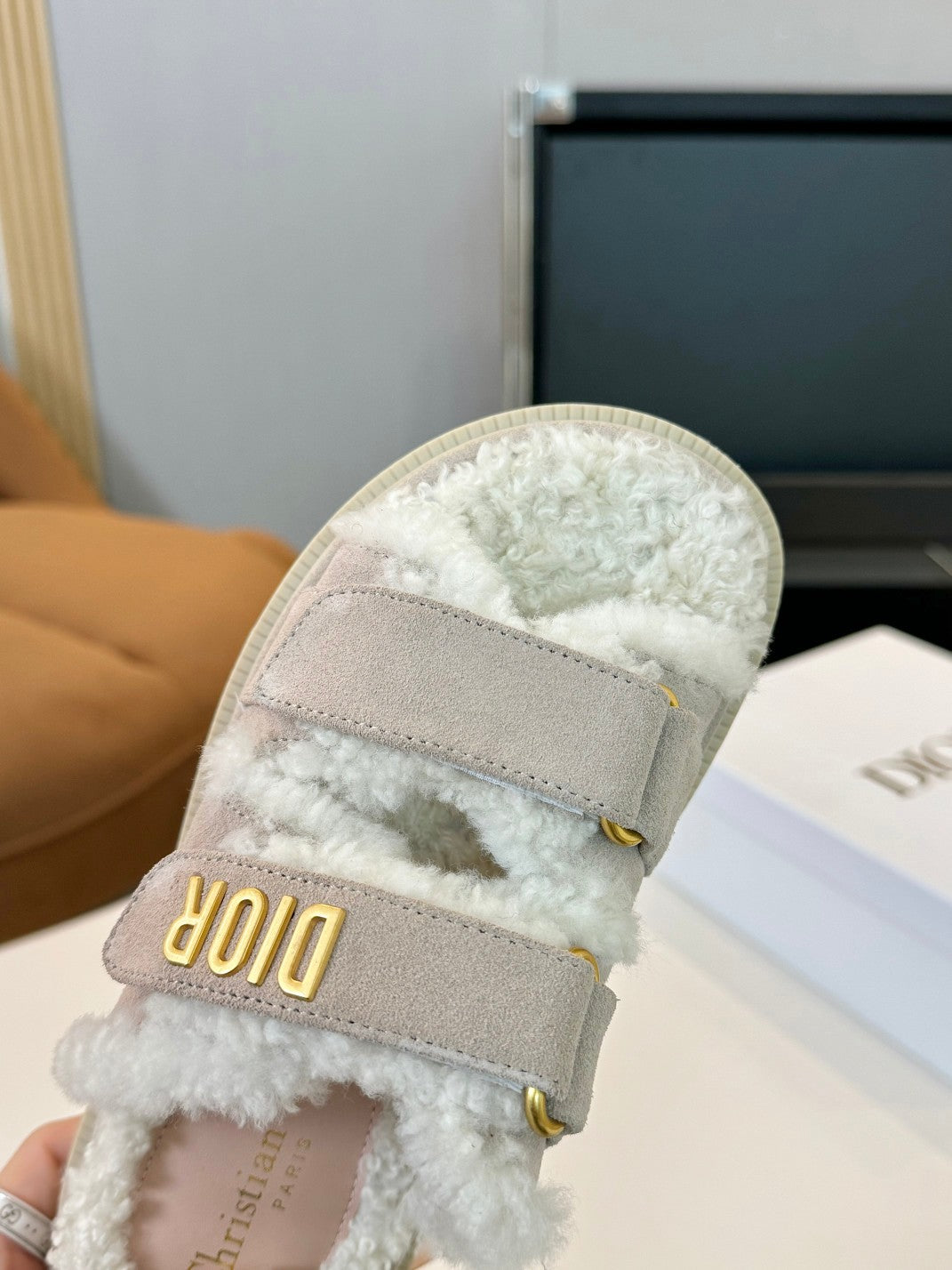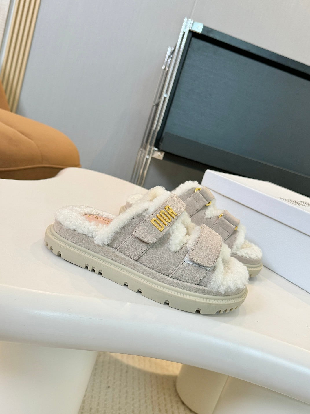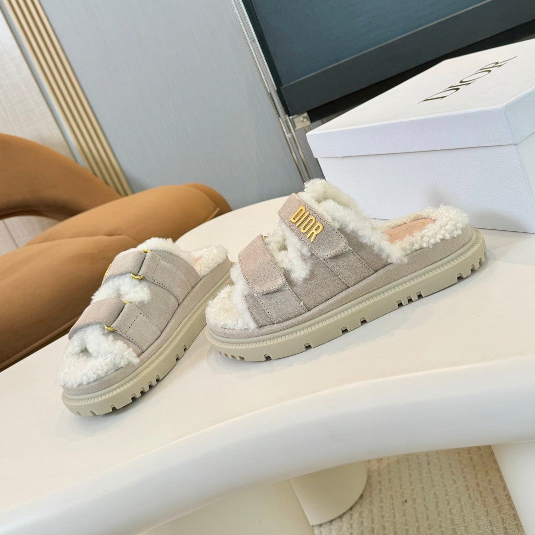 CD Dioract Slide Grey Suede And Fleece Lining