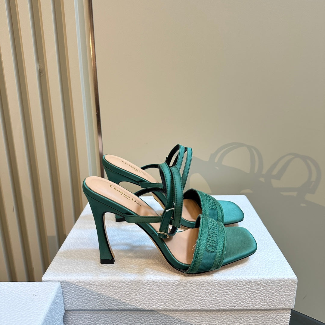 CD Dway Heeled Sandal 105mm Green Silk And Lambskin