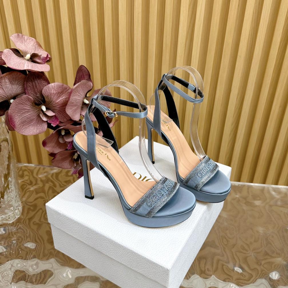 CD Dway Heeled Sandal 120mm Blue Silk And Lambskin