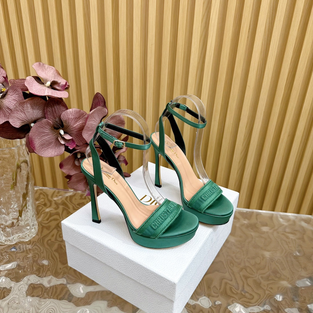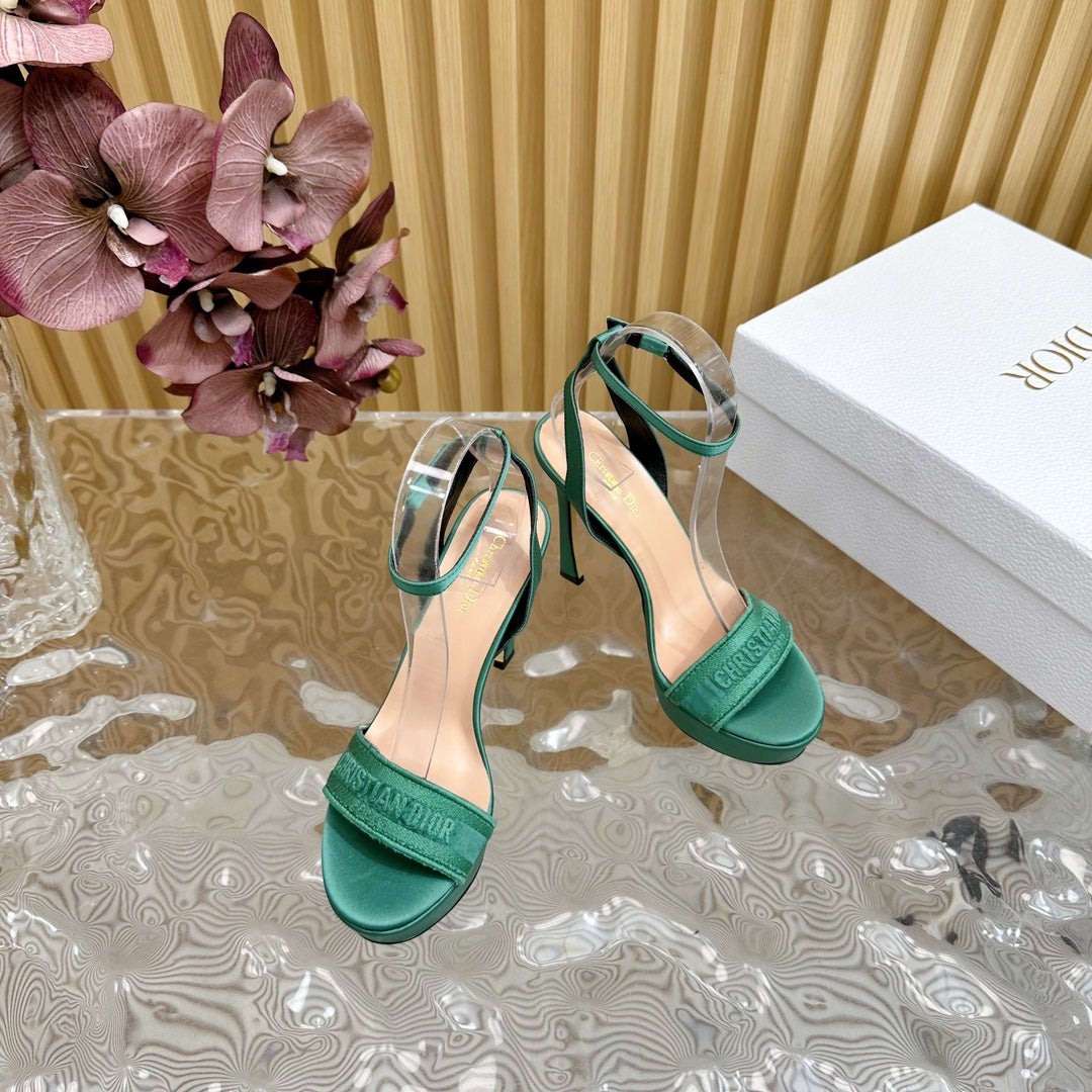 CD Dway Heeled Sandal 120mm Green Silk And Lambskin