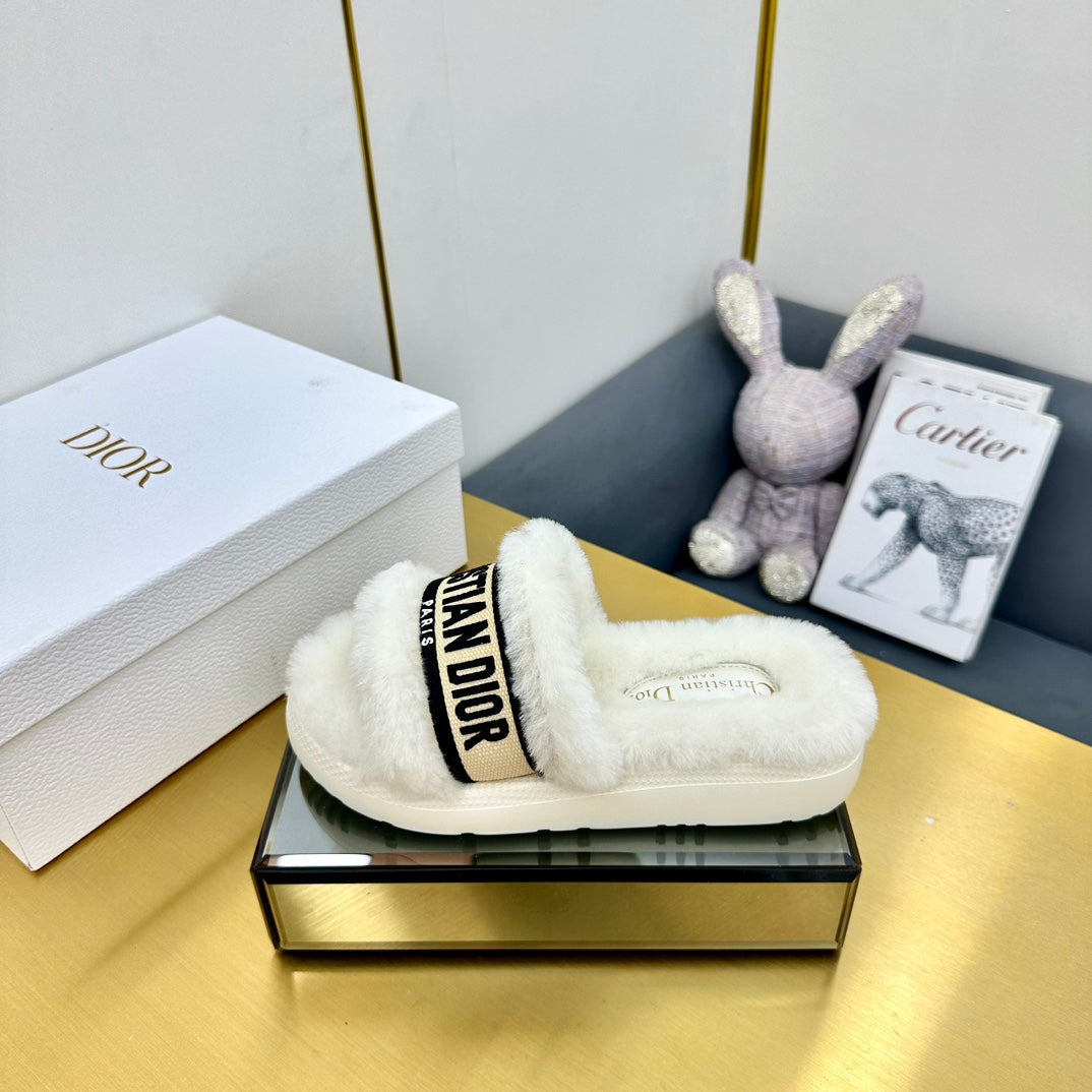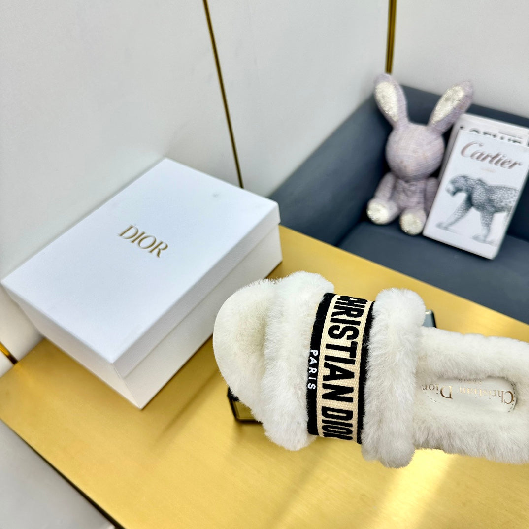 CD Dway Slide In White Mix Black Wool Fleece Lining And Canvas Fabric 111079