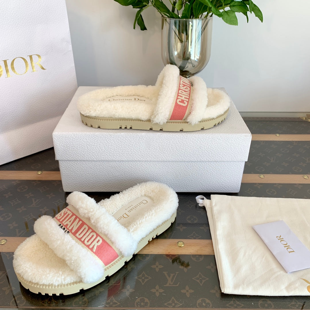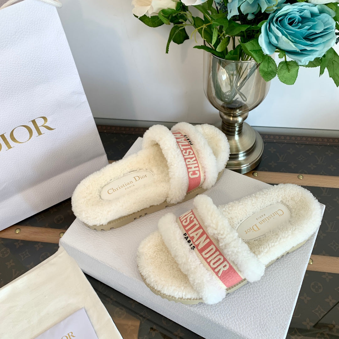 CD Dway Slide Pink White Fleece Lining And Canvas Fabric