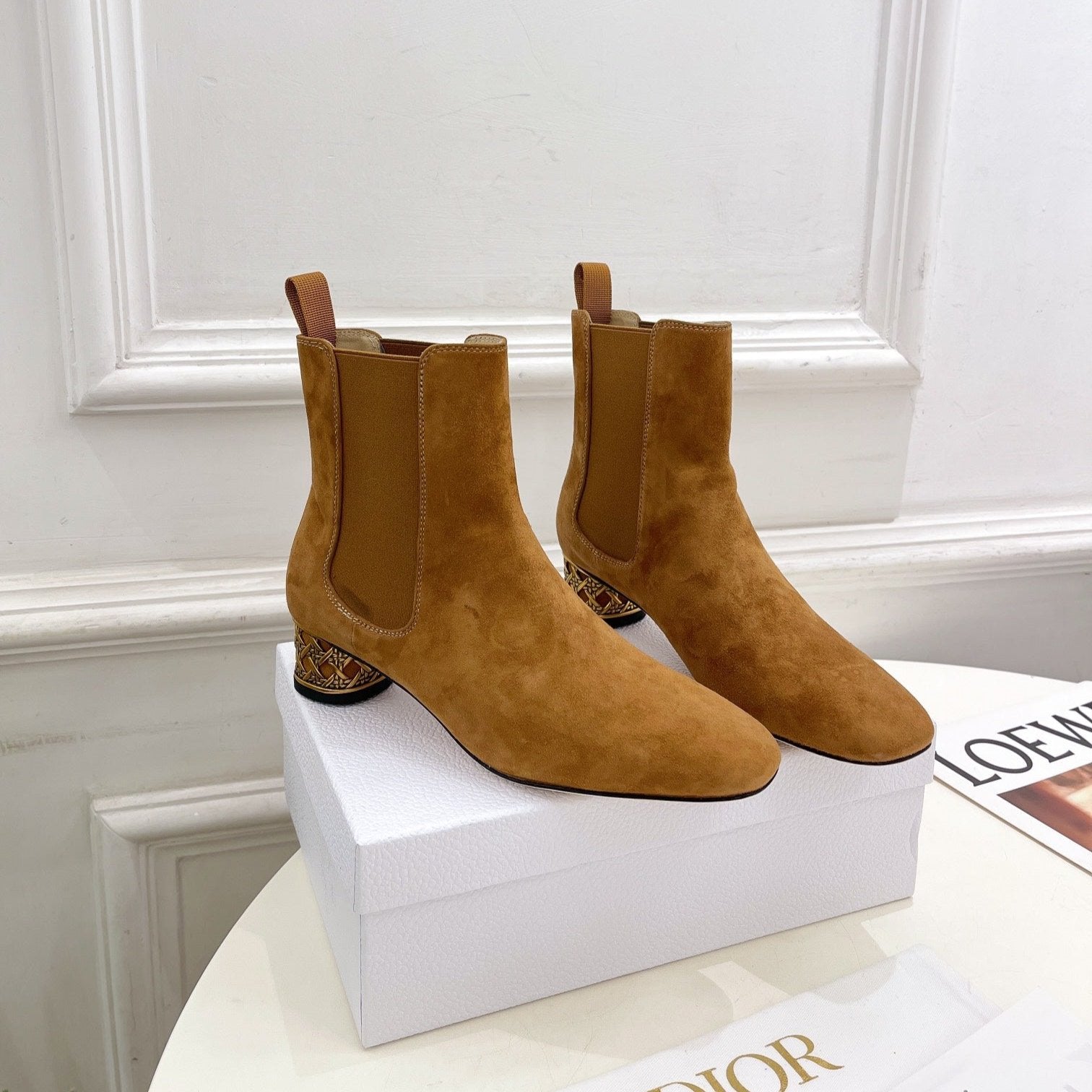 CD Icon Heeled Ankle Boot 40mm Brown Orange Suede