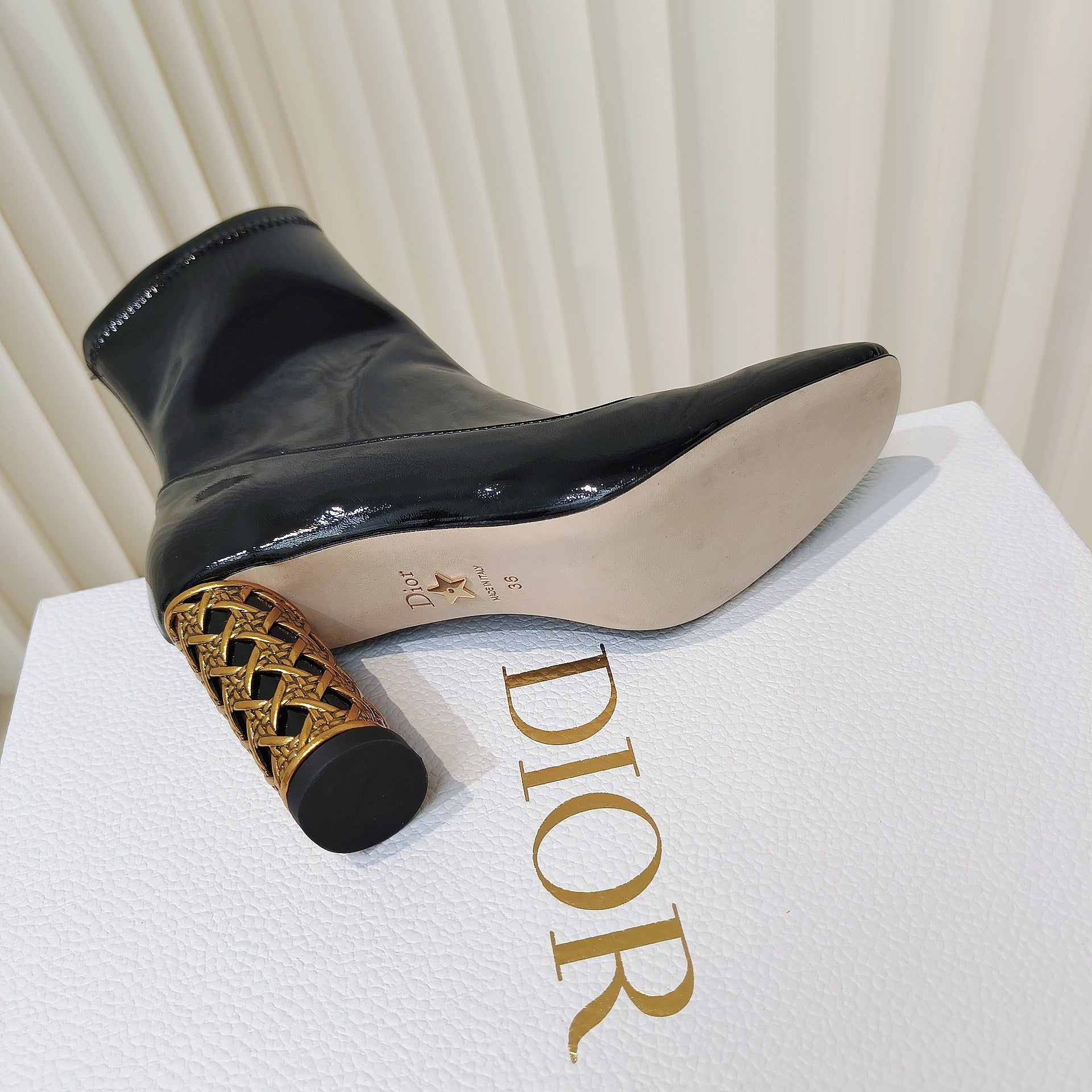 CD Icon Heeled Ankle Boot 40mm In Glossy Black Cowhide 111376