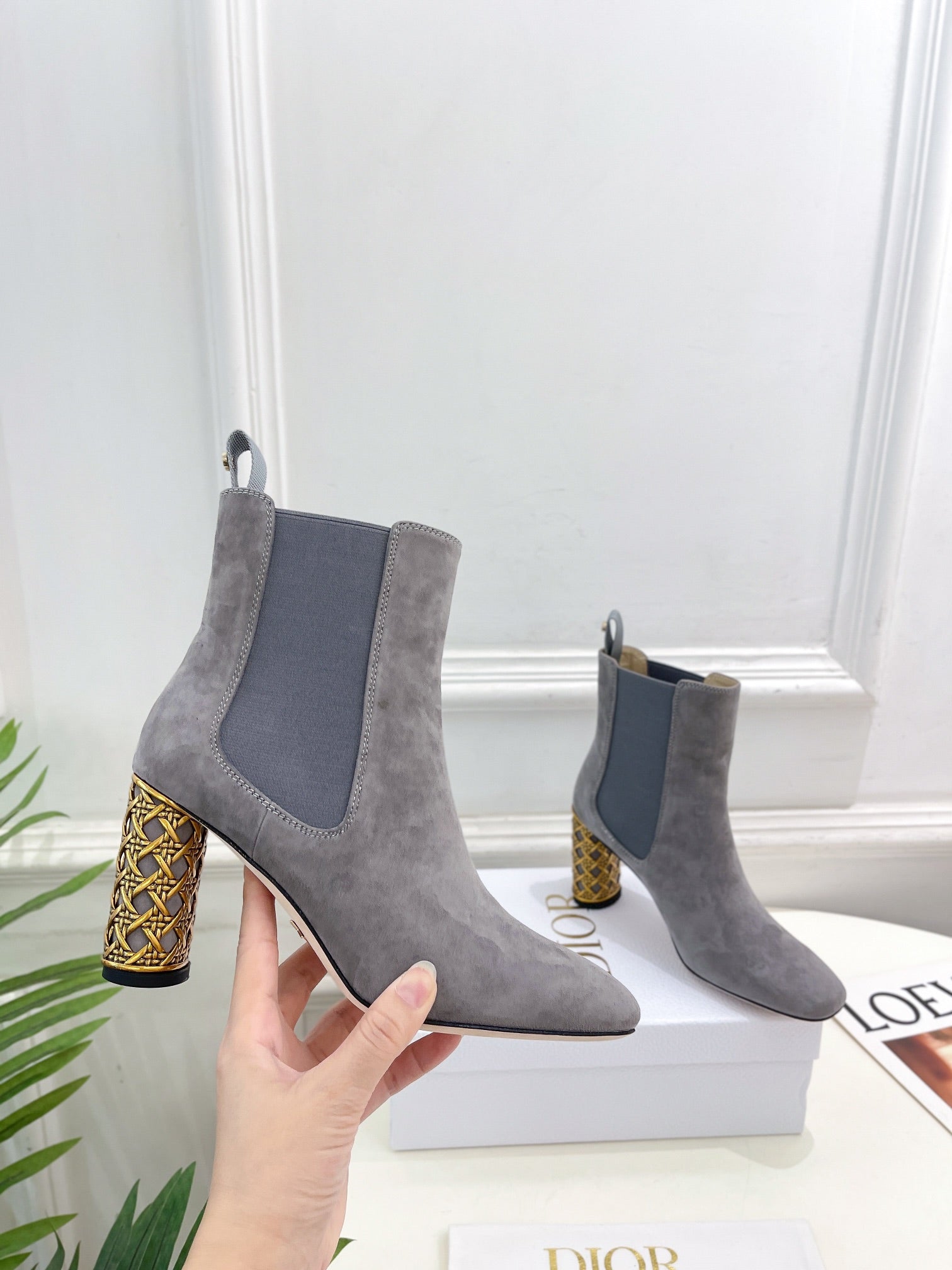 CD Icon Heeled Ankle Boot 80mm Grey Suede