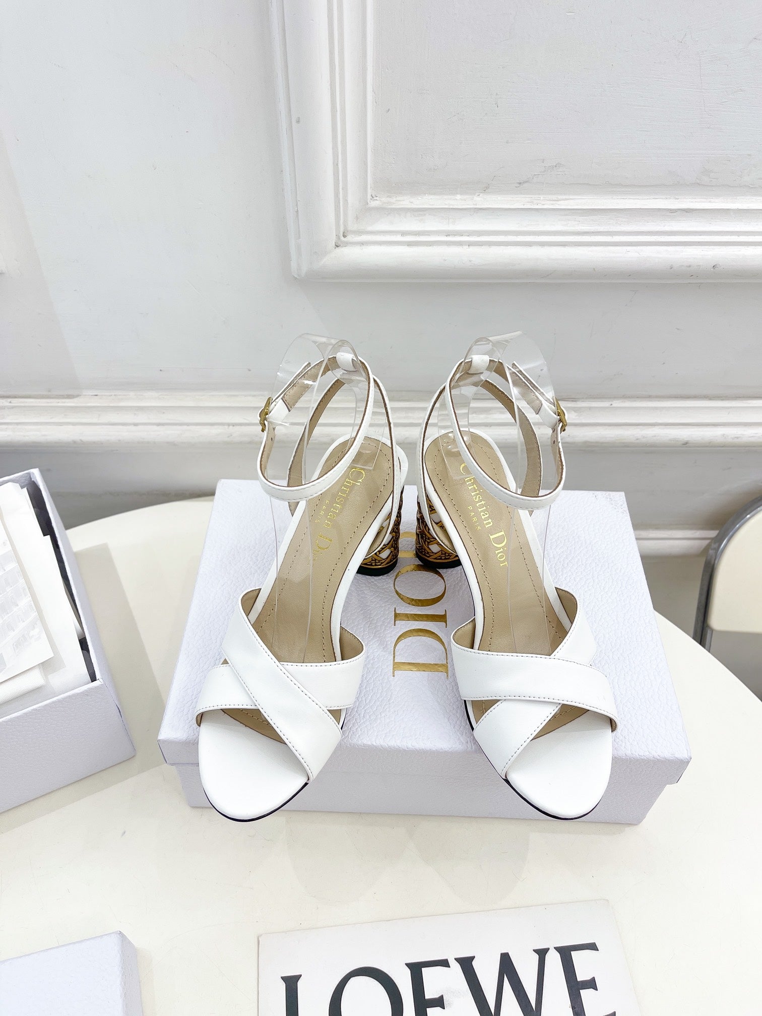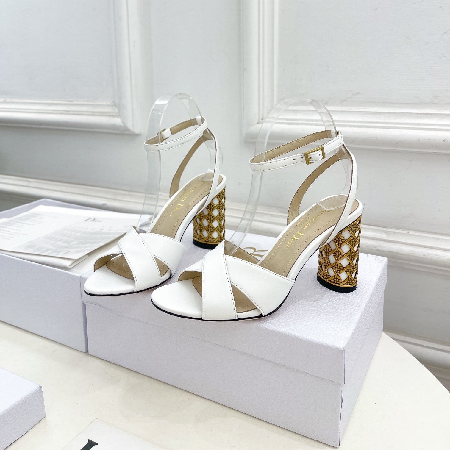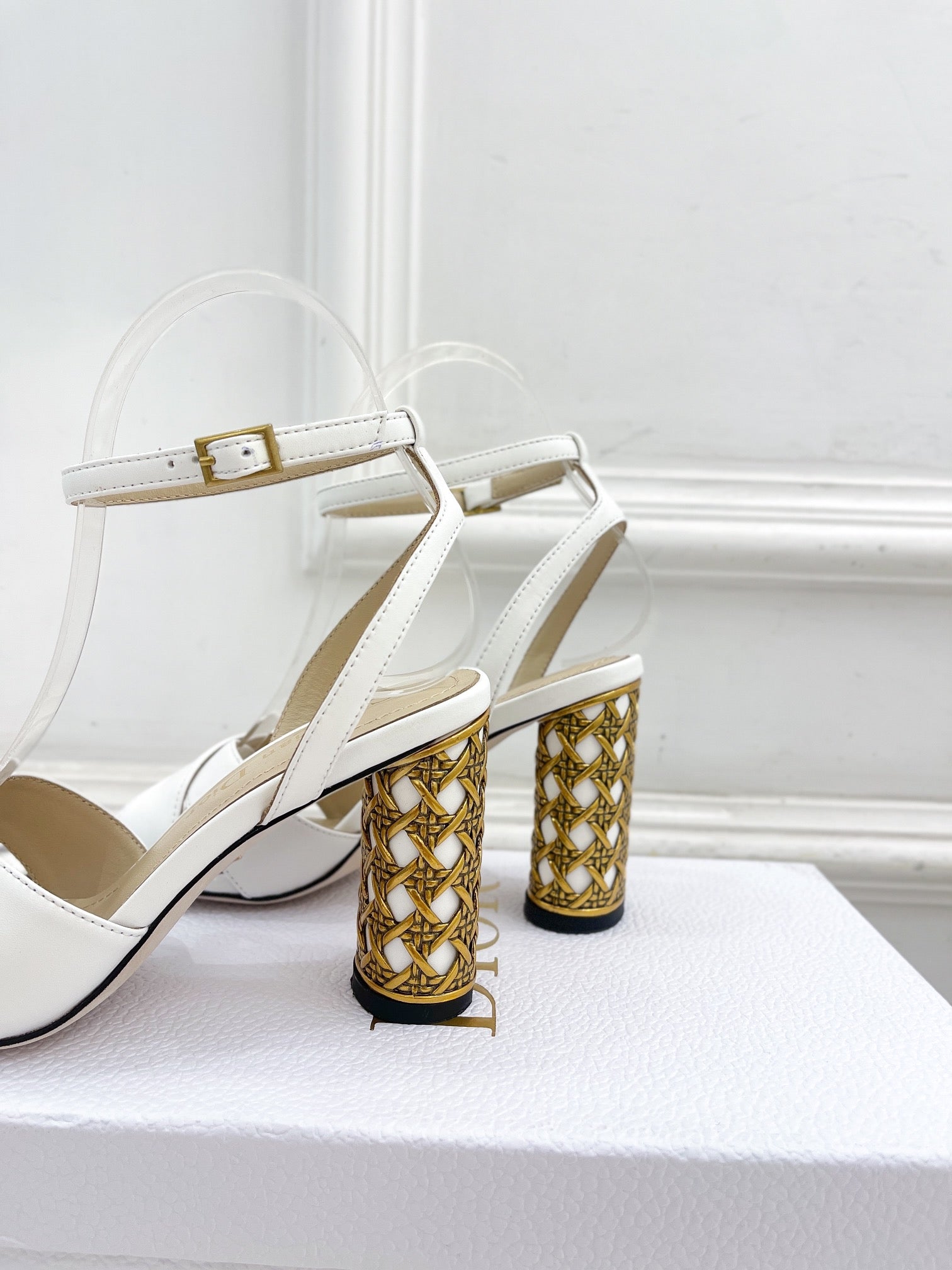 CD Icon Heeled Sandal 80mm White Calfskin
