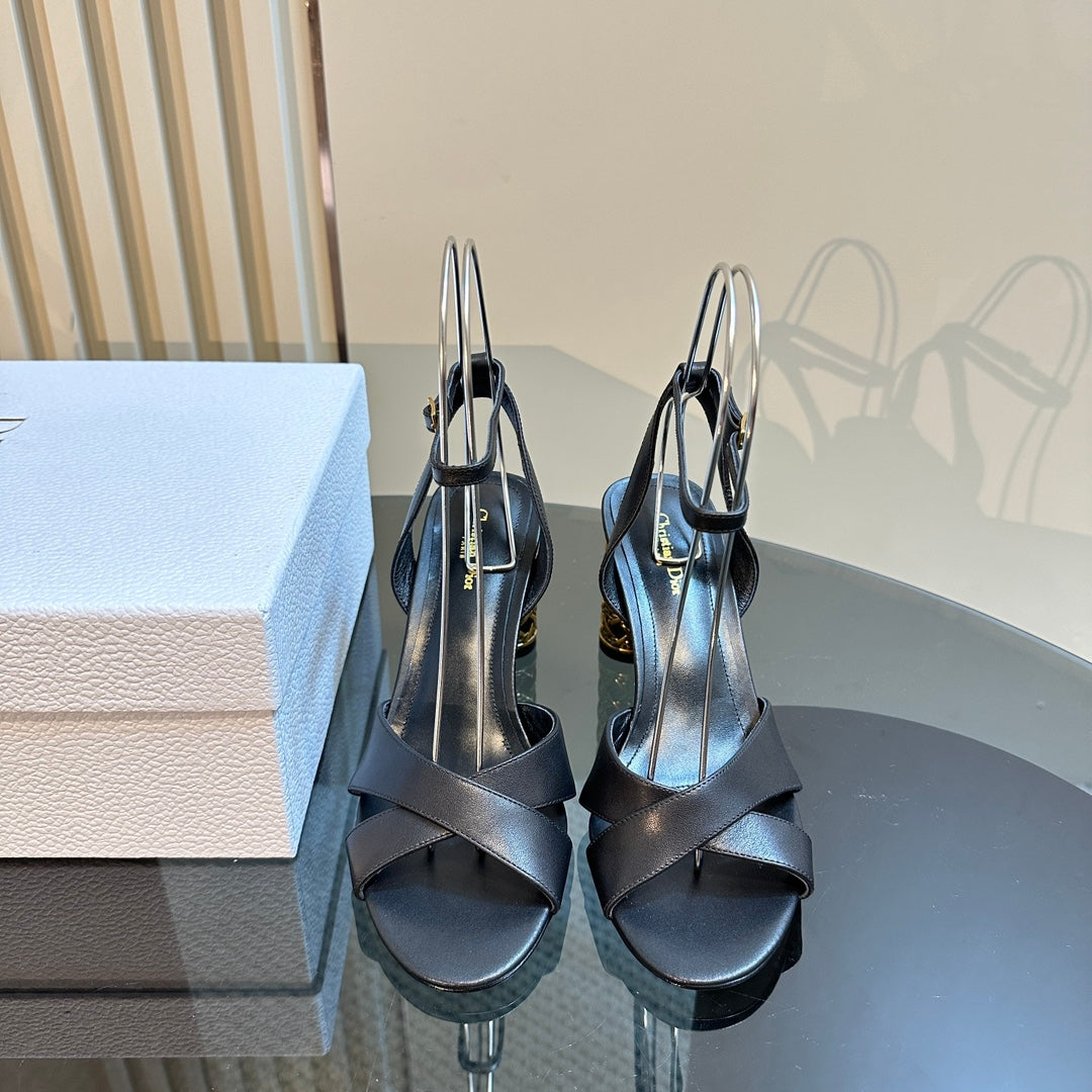 CD Icon Heeled Sandal 95mm Black Calfskin
