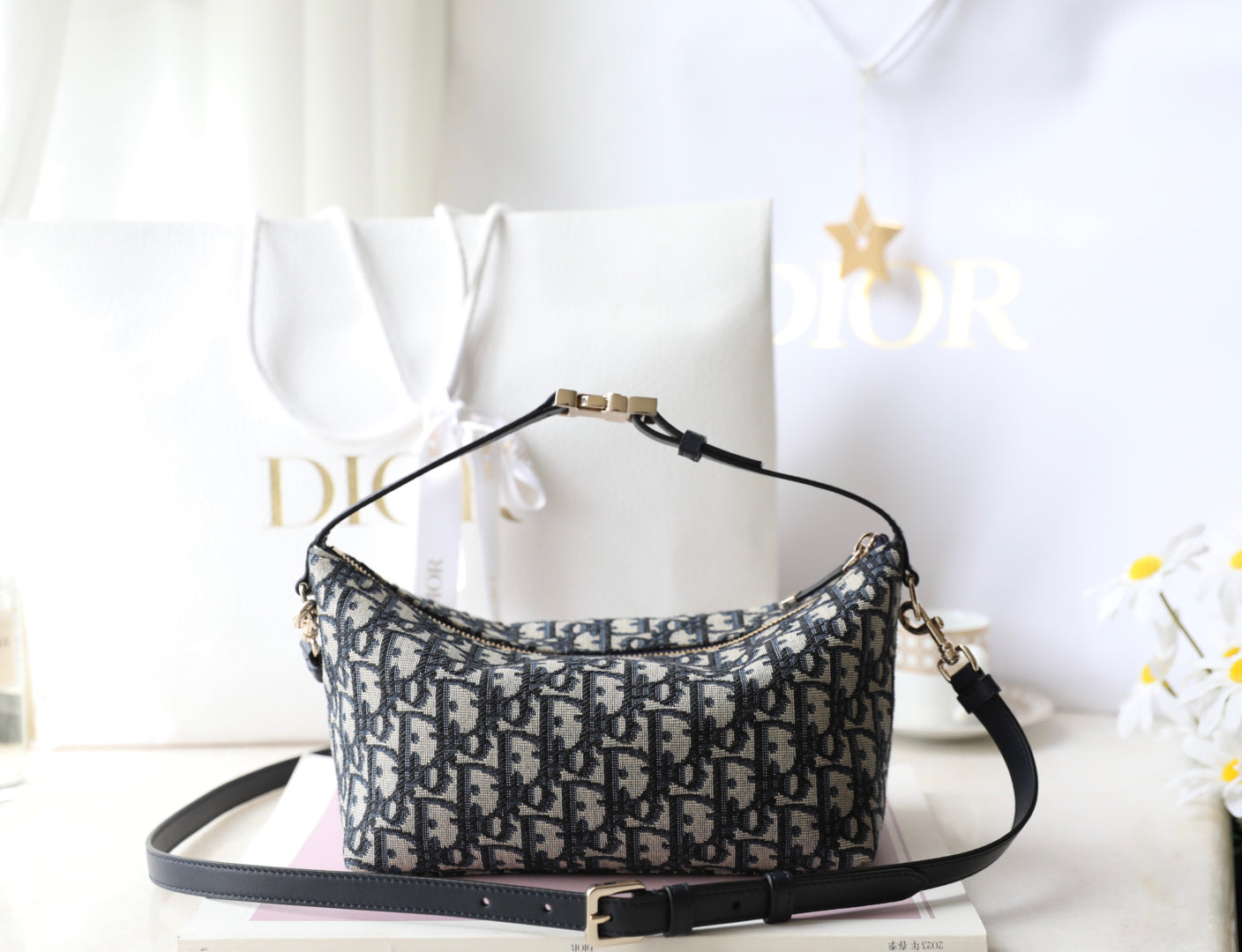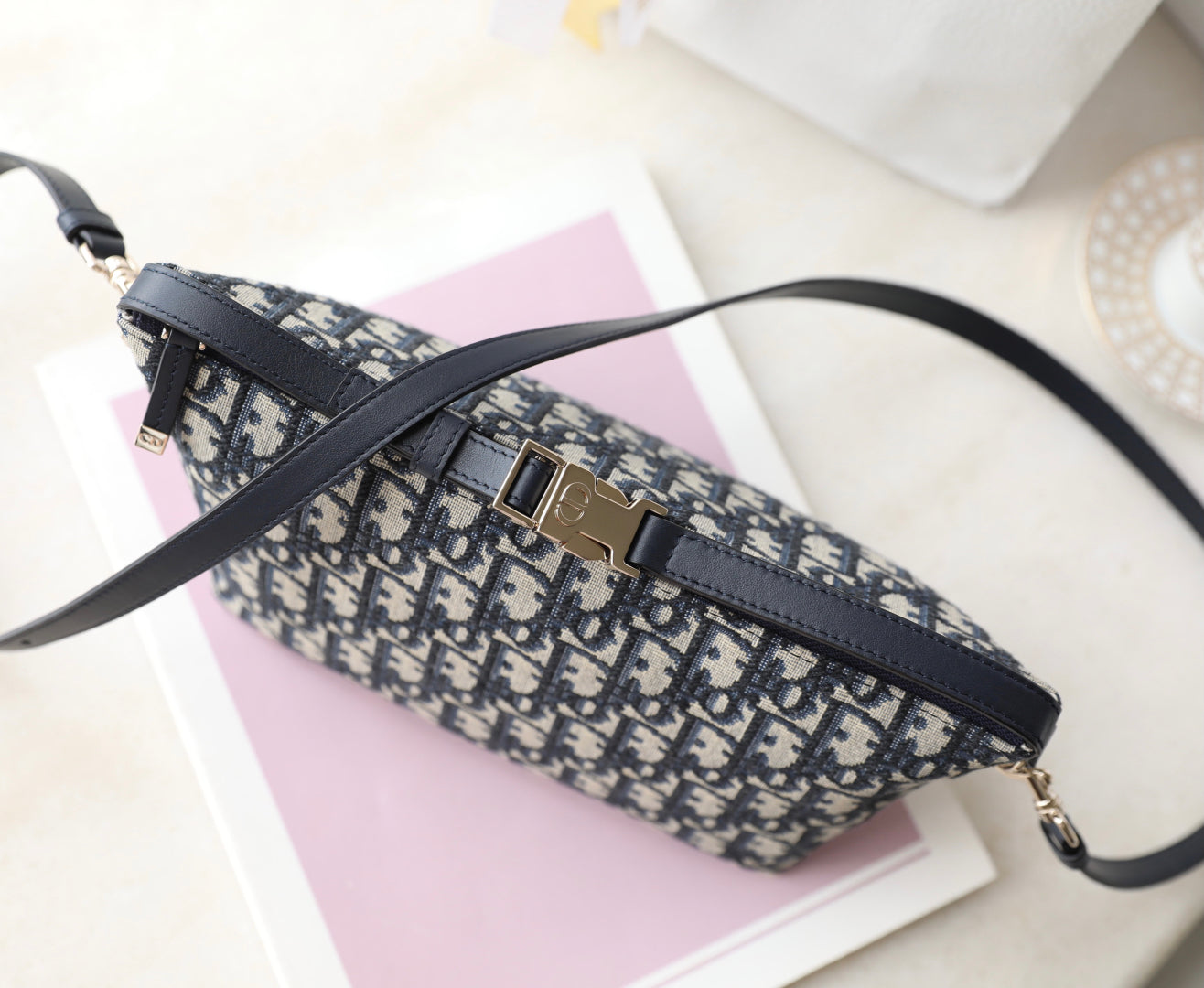 CD Monogram Nonad Lunch Bag Blue Beige Canvas