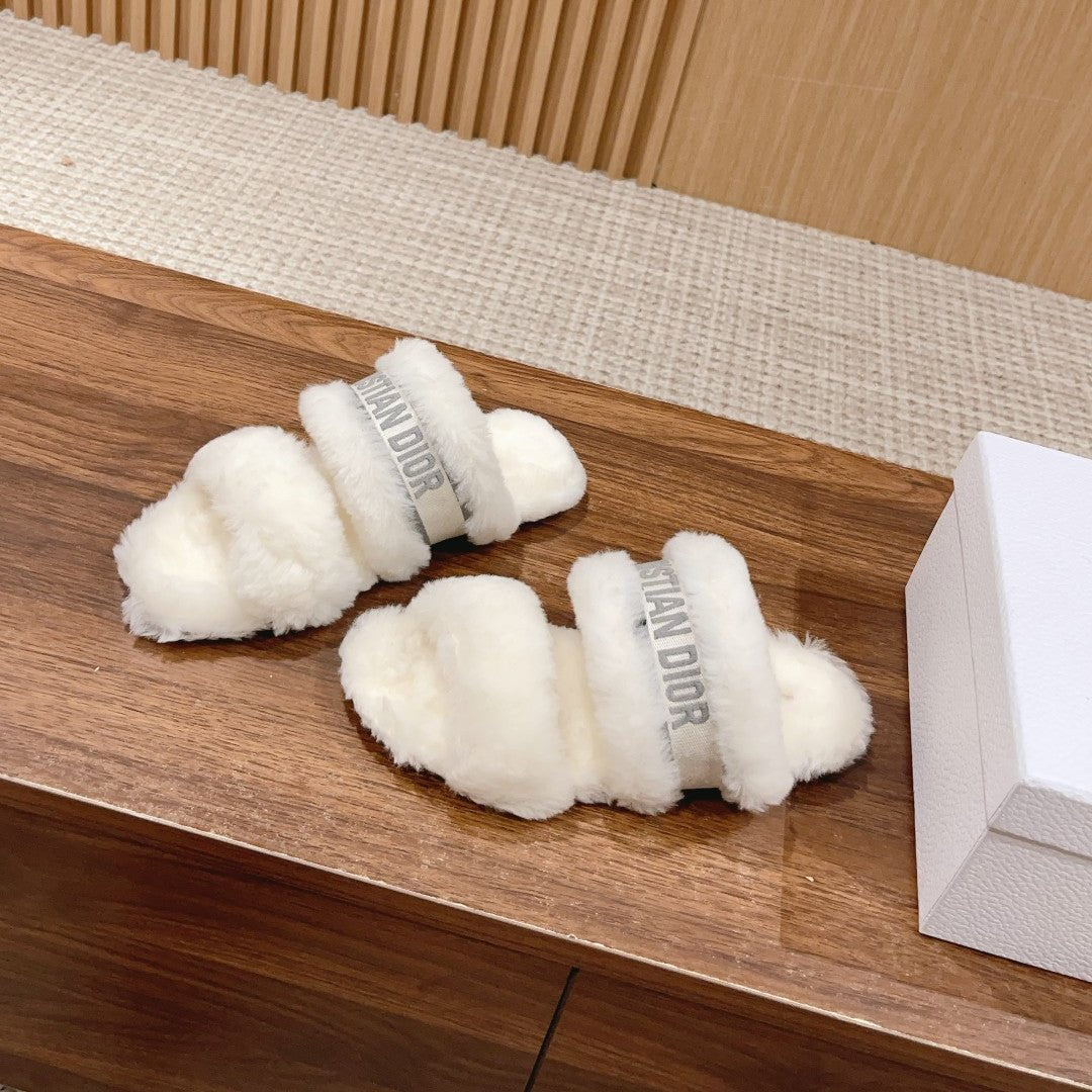 CD Sandal White Grey Fleece And Canvas Fabric