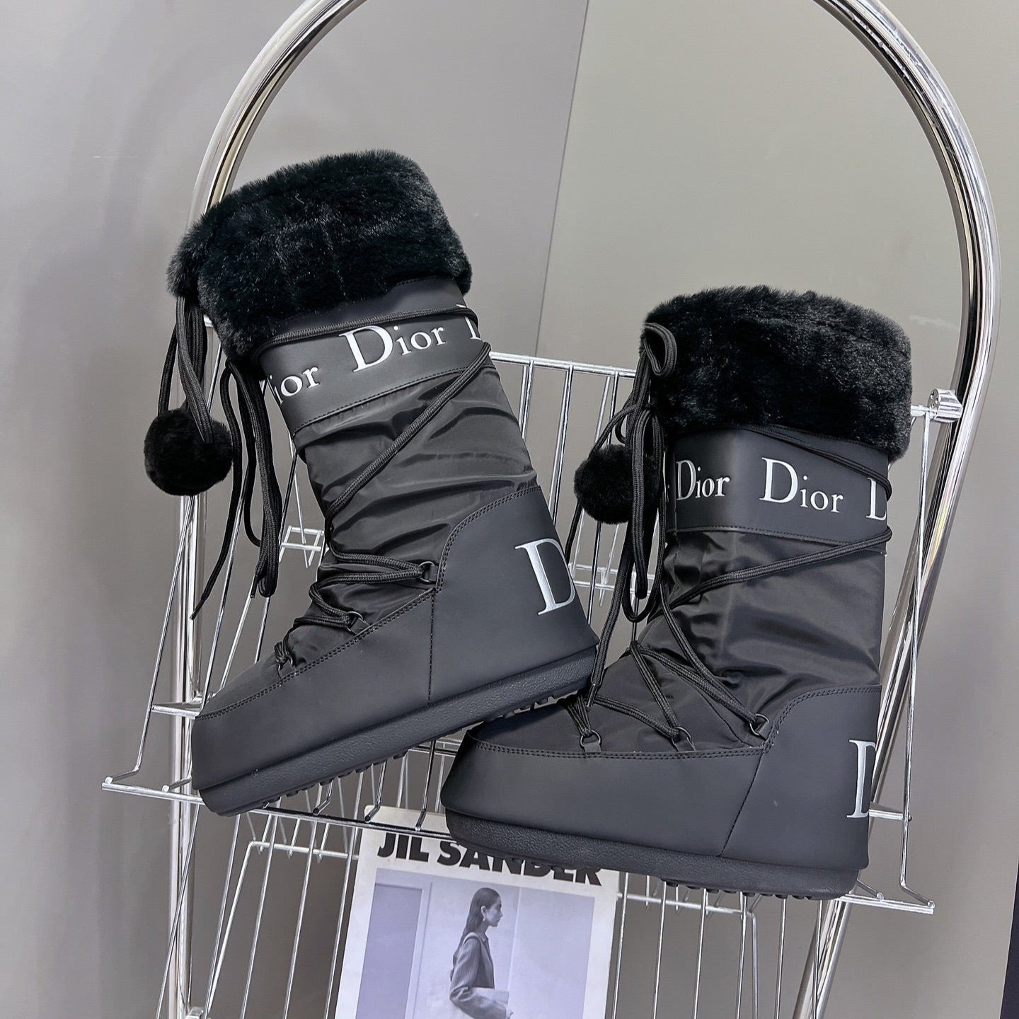 CD Short Boots 60mm In Black Cowhide With Feather 989723
