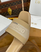 cd slide 45 beige calfskin embroidered cotton