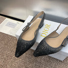 cd slingback flat opaque black calfskin resin pearl