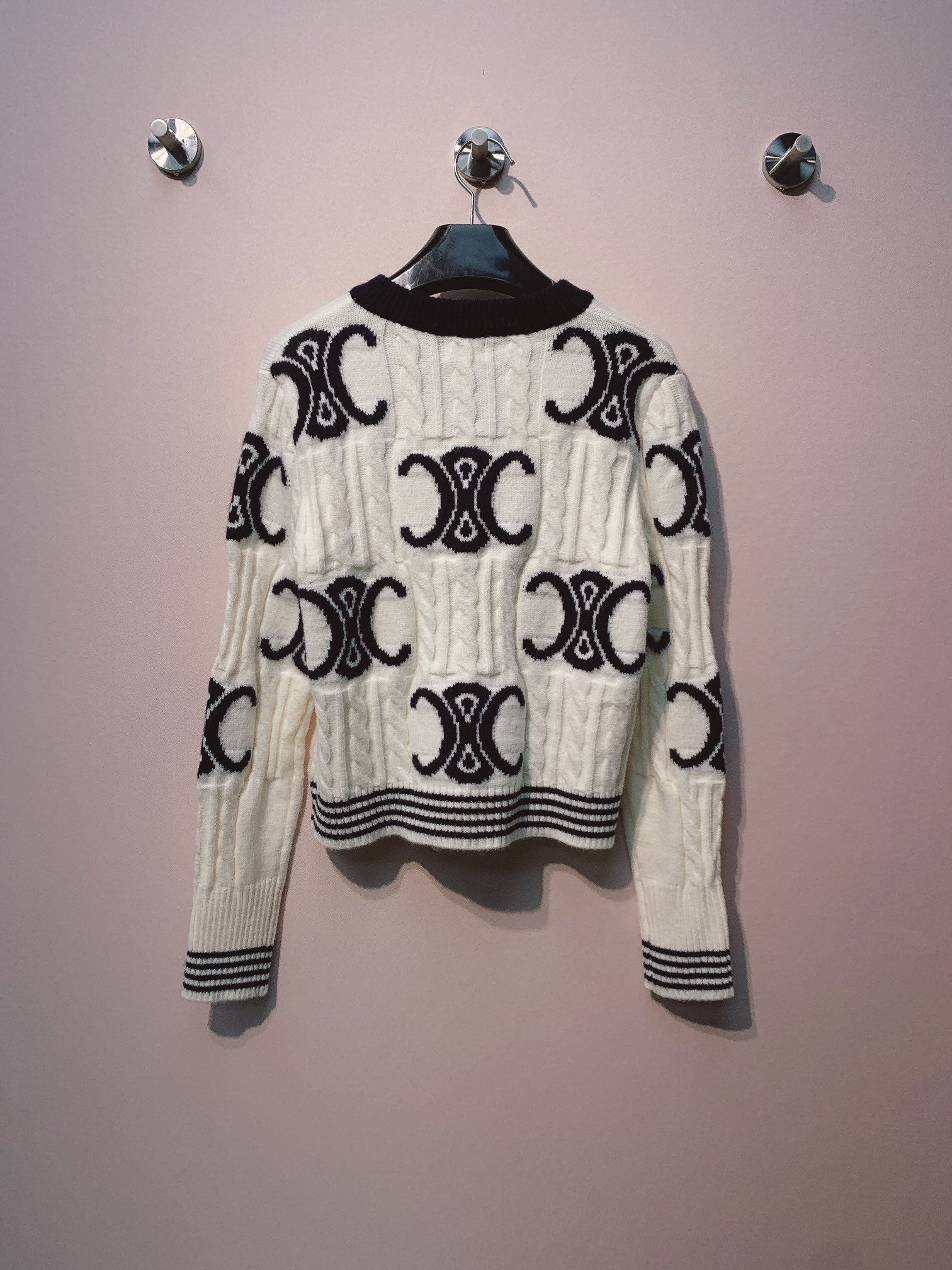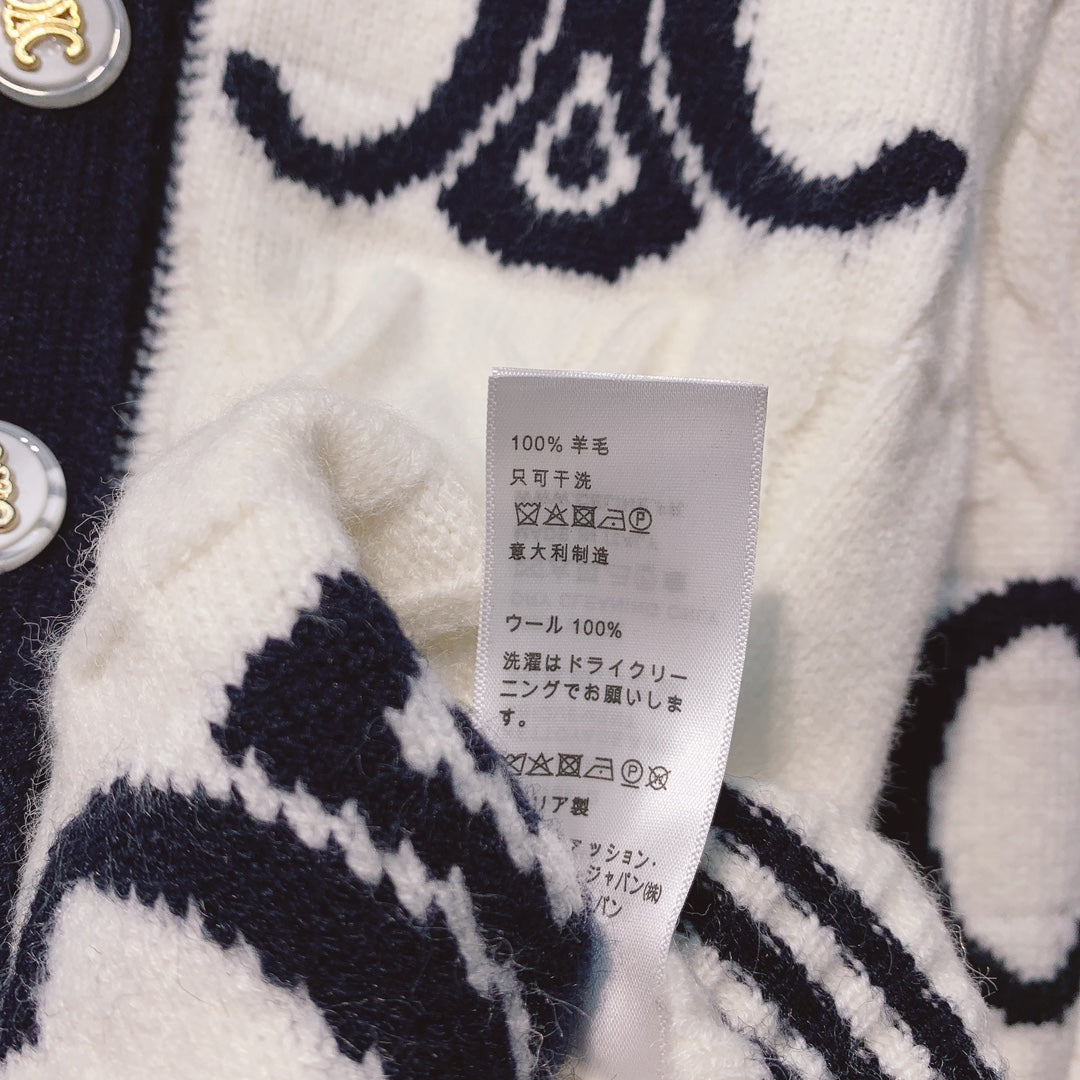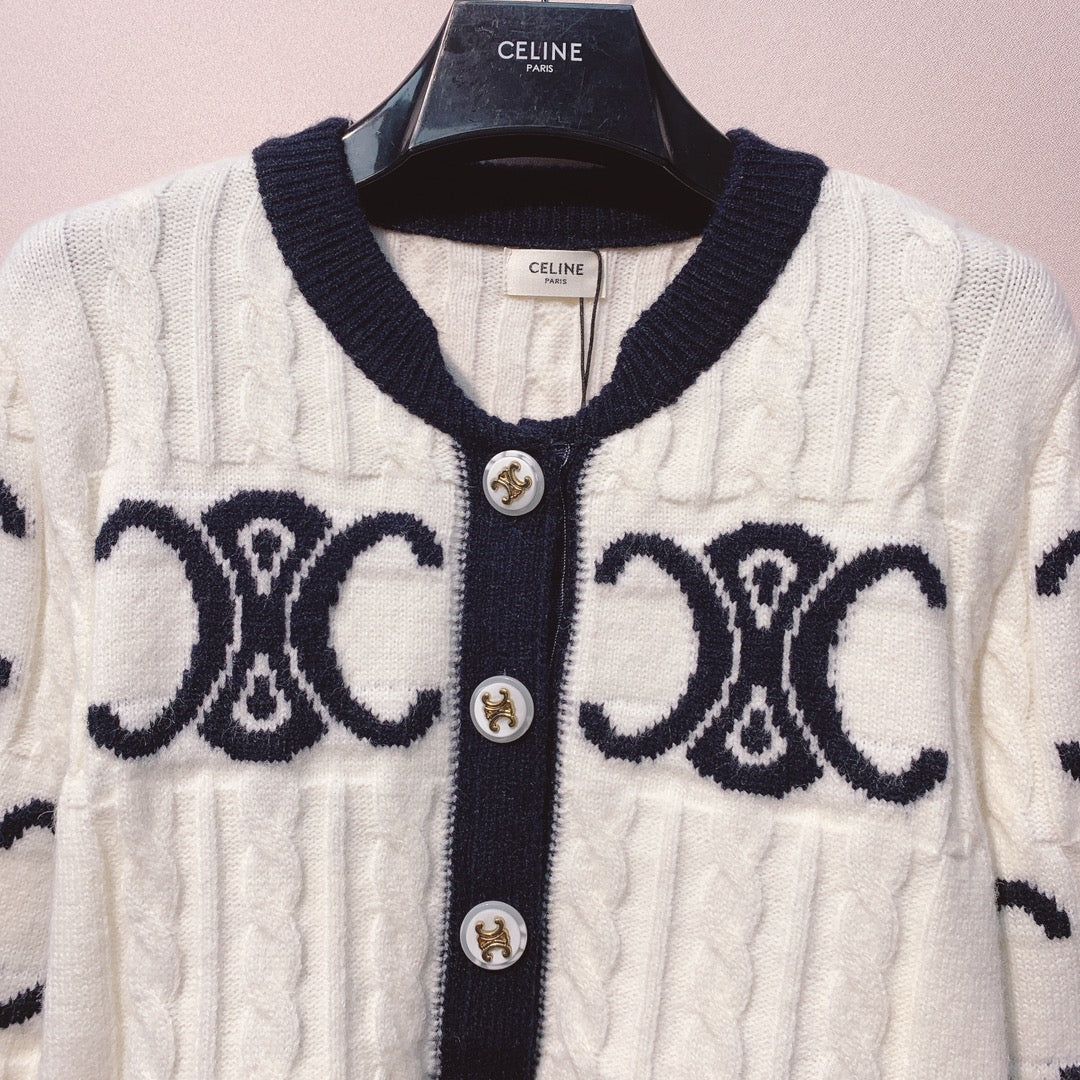 Celine 25 Cardigan Logo White Wool 293416