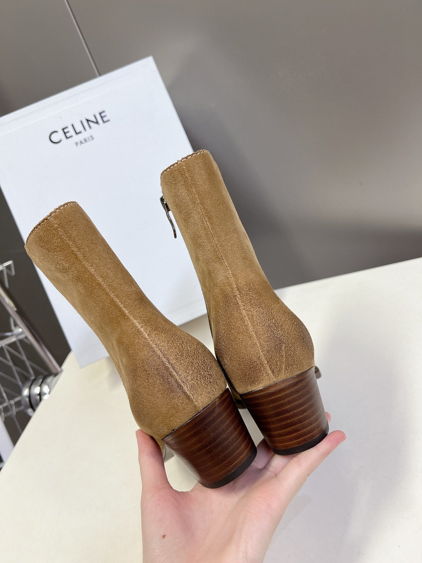 CELINE 25 Cowboy Boots Light Brown Suede 434415