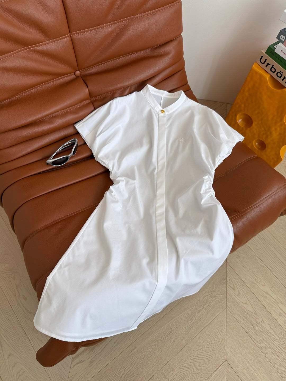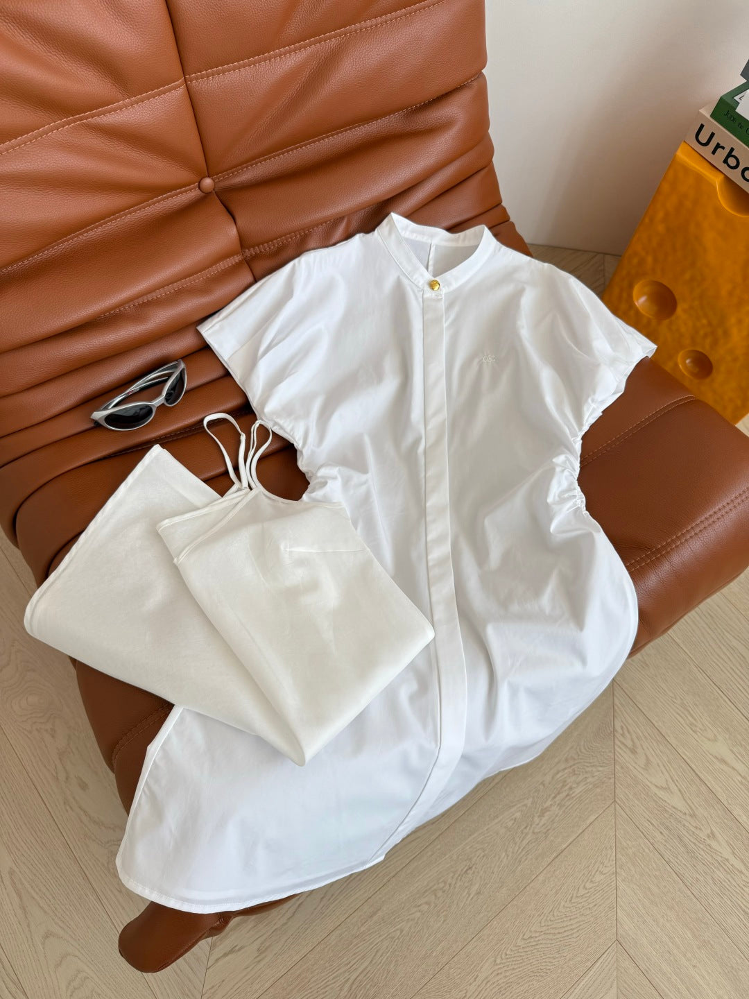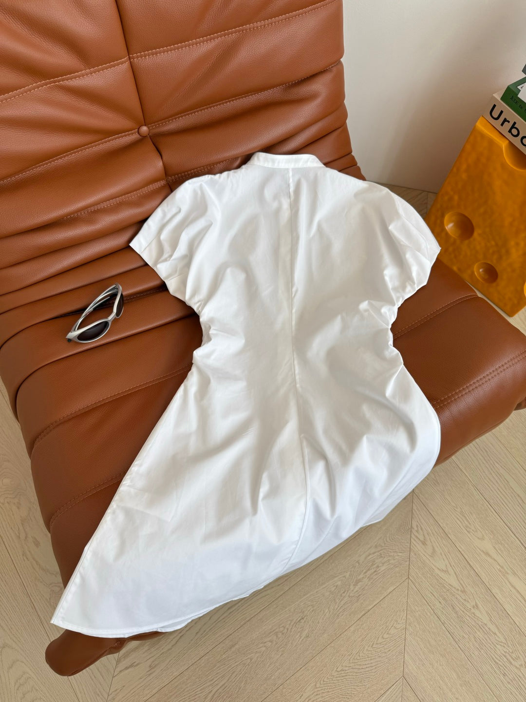 Celine 25 Flying Sleeve Waist Dress White Cotton