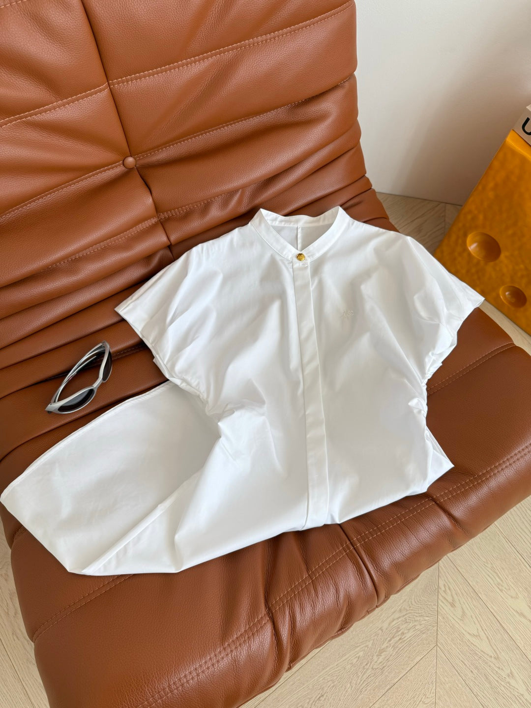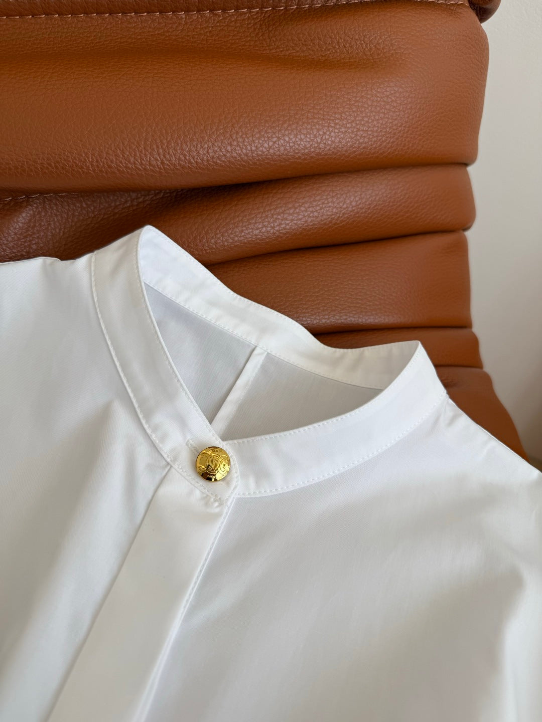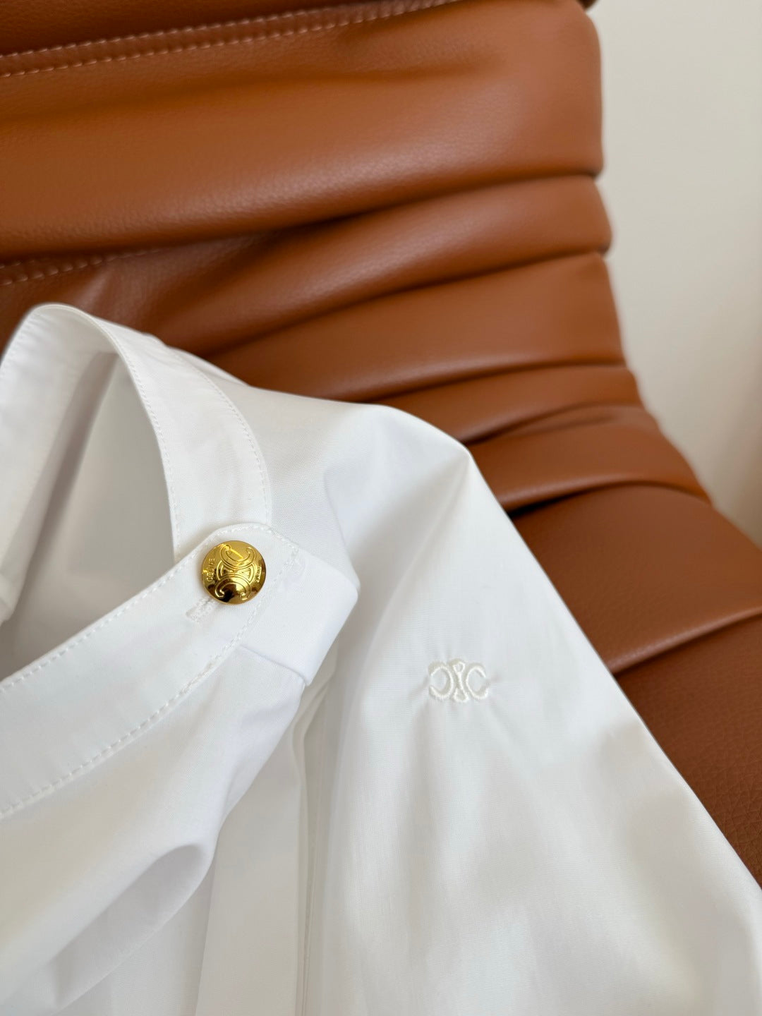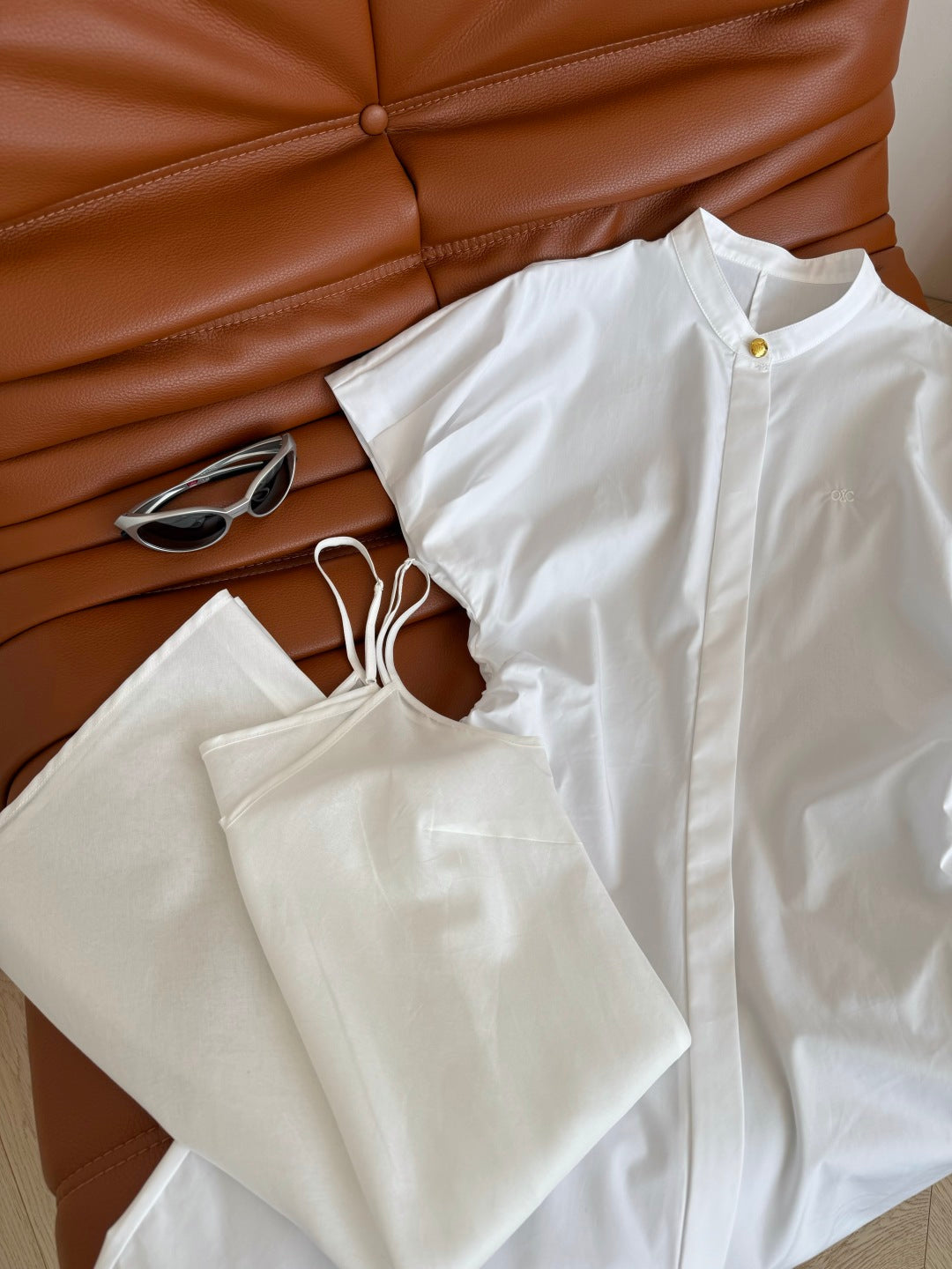 Celine 25 Flying Sleeve Waist Dress White Cotton