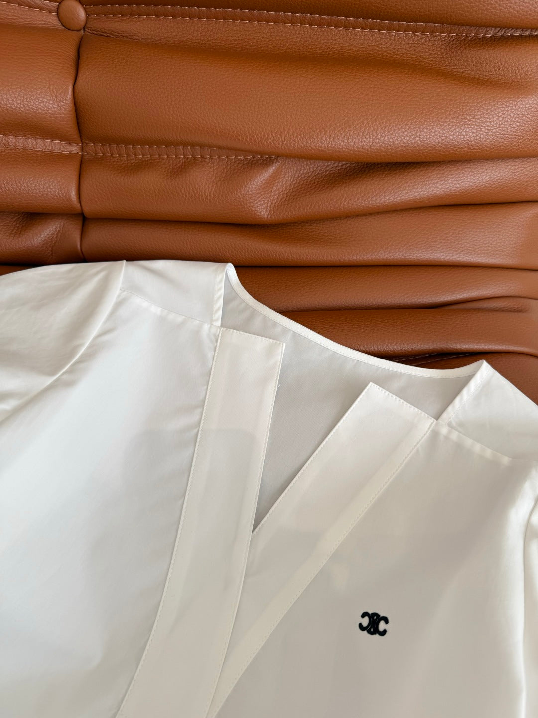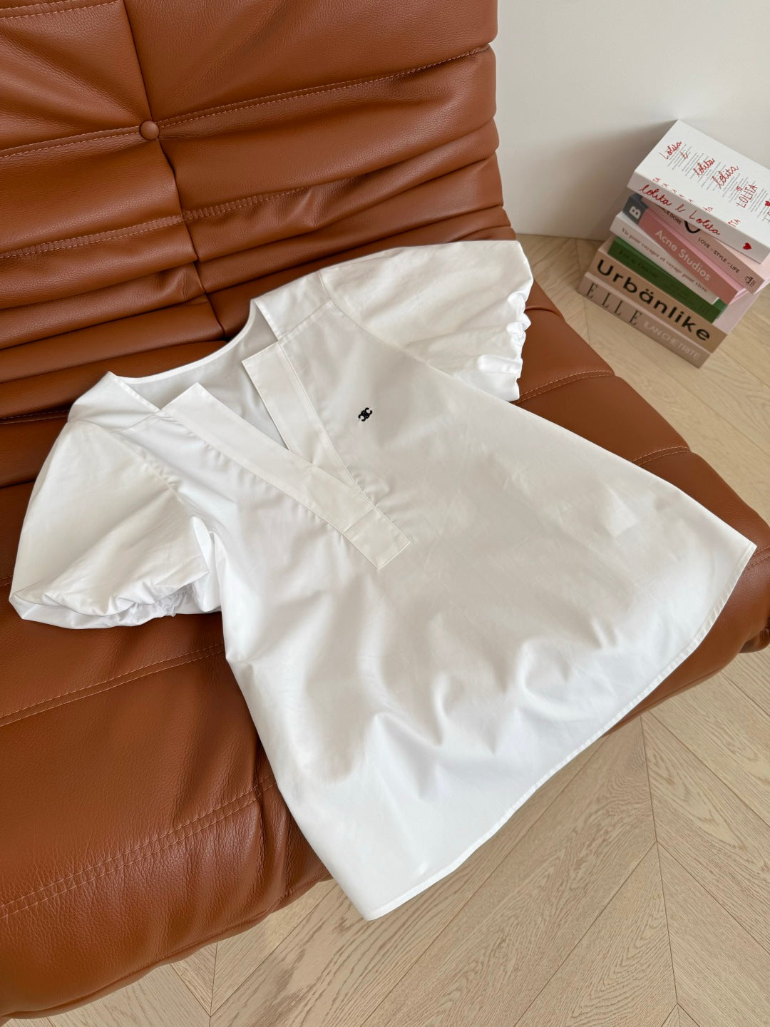 Celine 25 Logo Embroidered Puff Sleeve Shirt Whiet Cotton