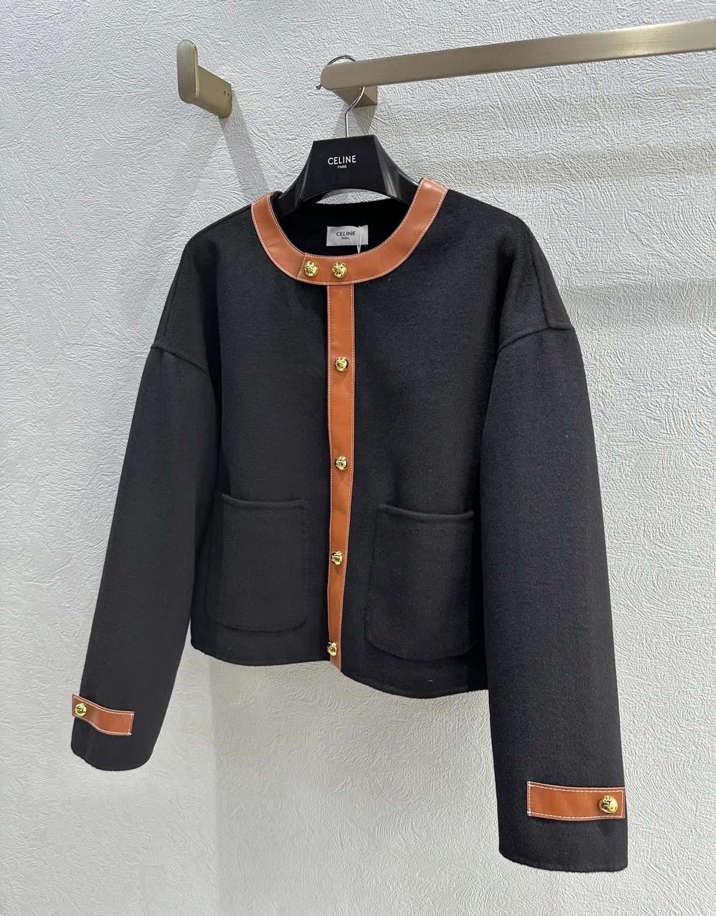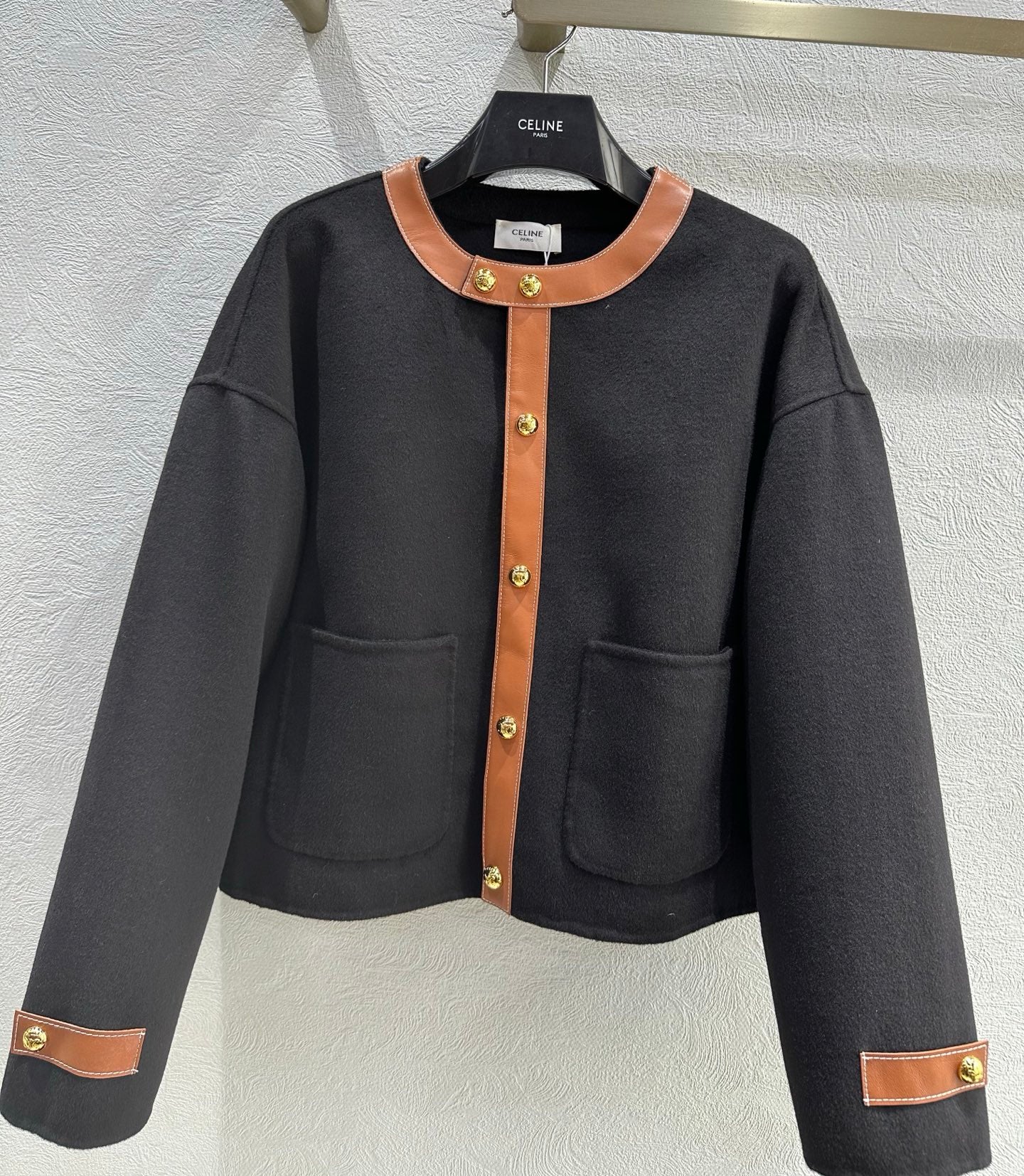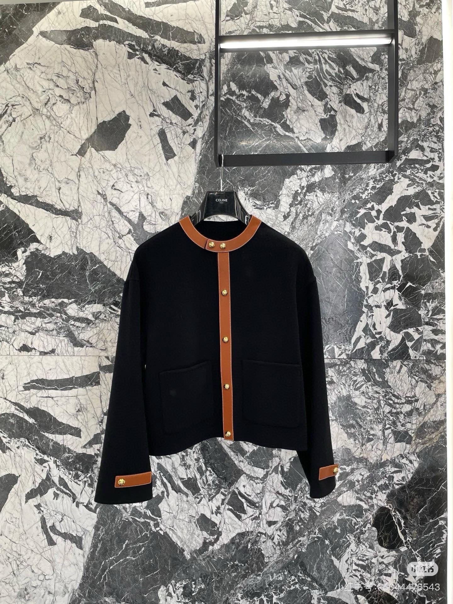 Celine 25 Round Neck Arc de Triomphe Jacket Black Brown Cashmere