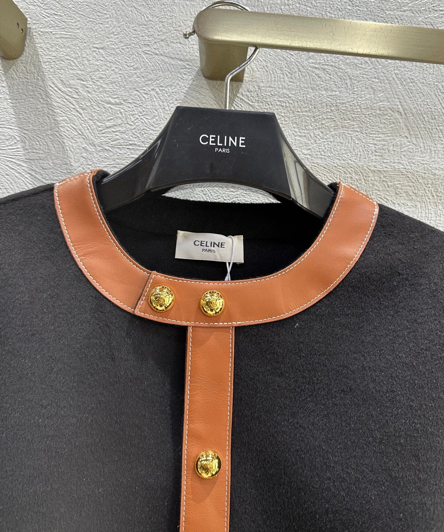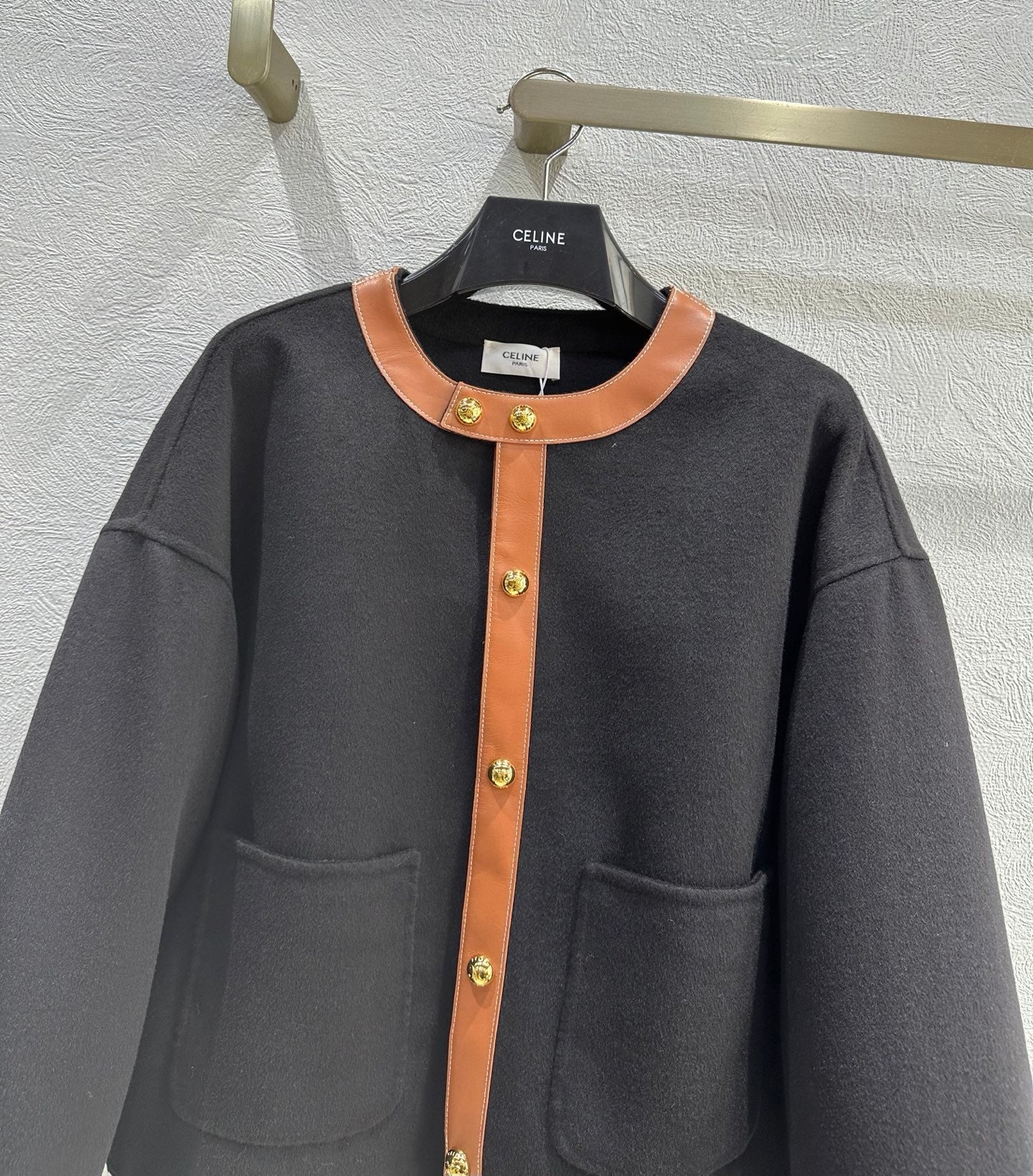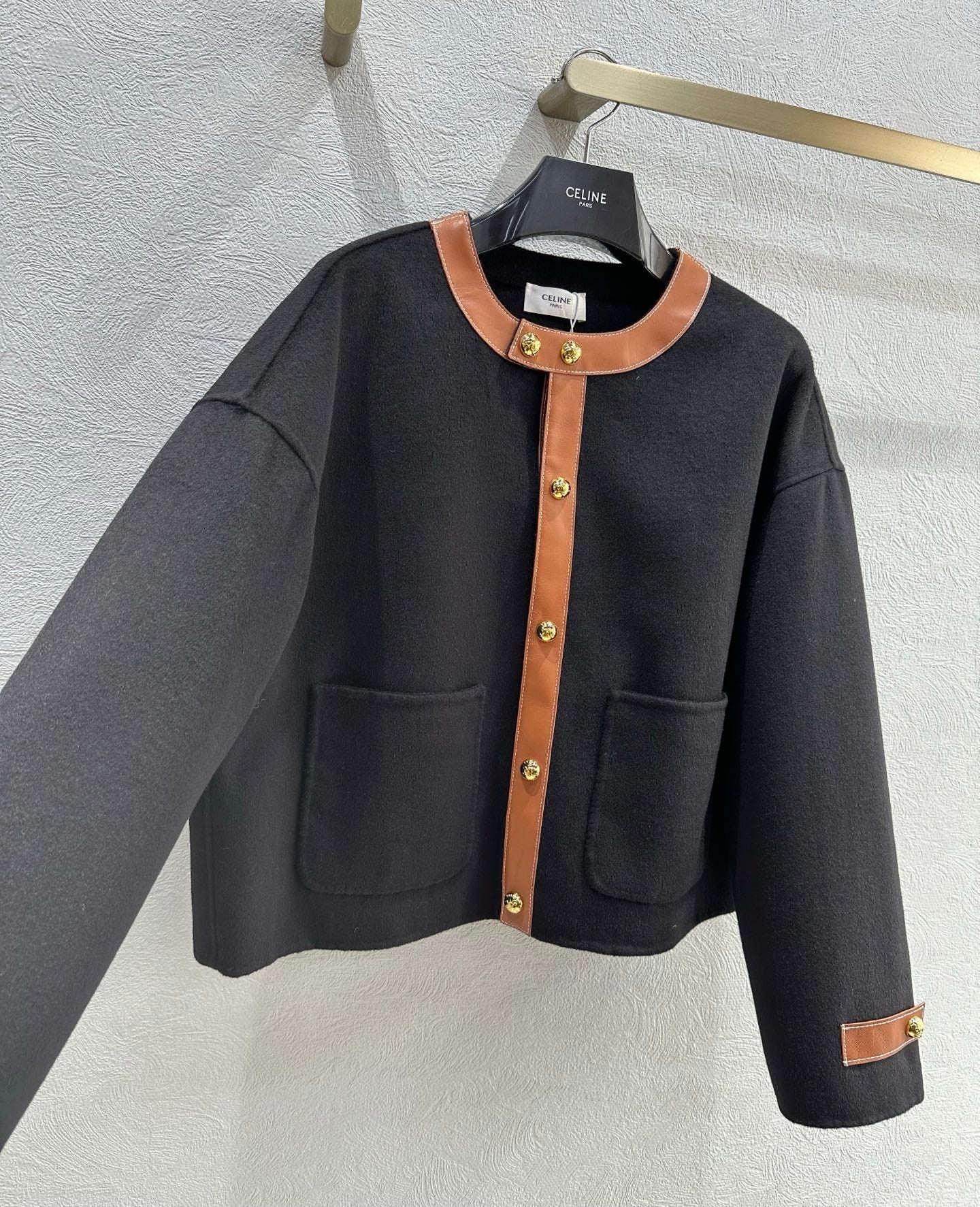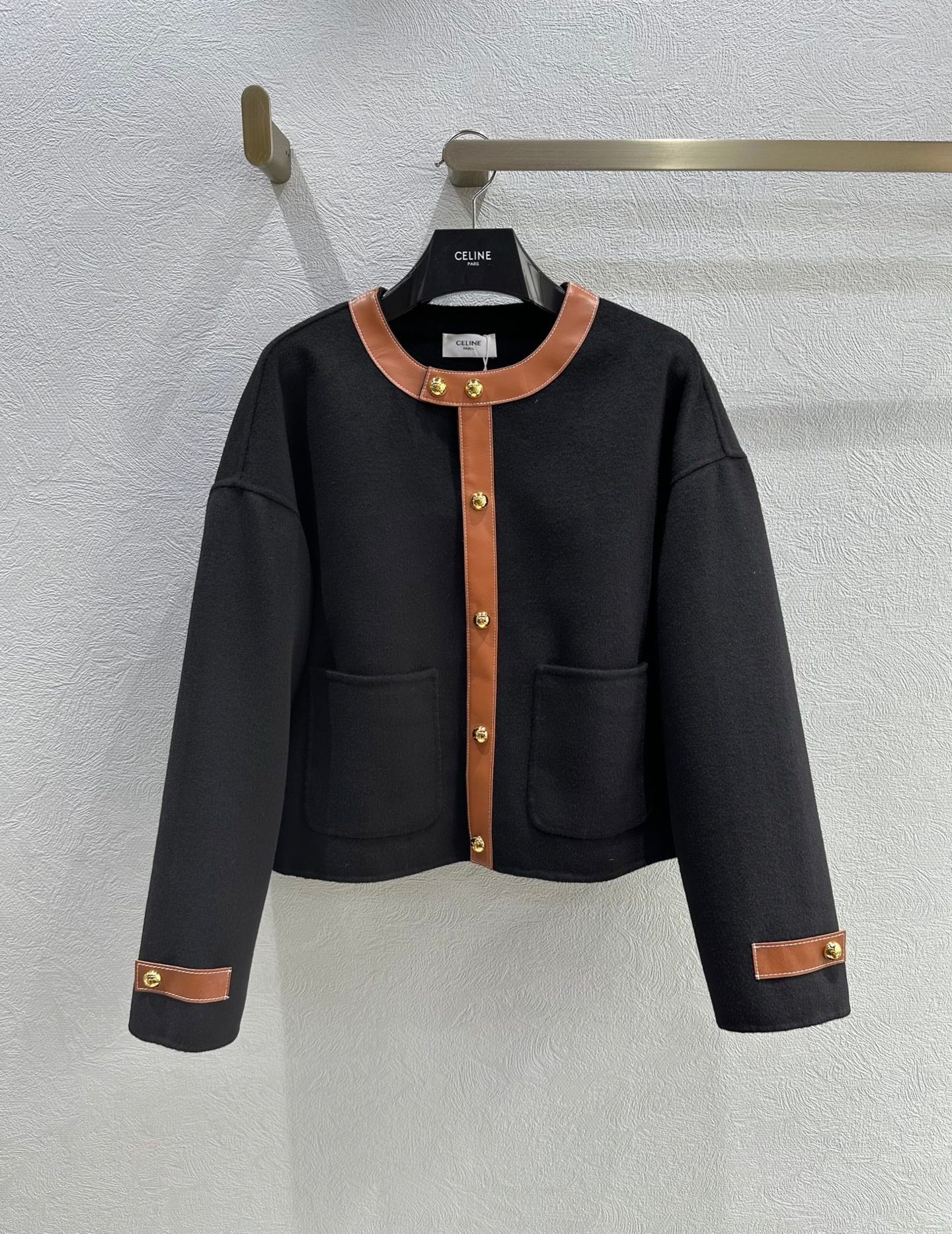 Celine 25 Round Neck Arc de Triomphe Jacket Black Brown Cashmere