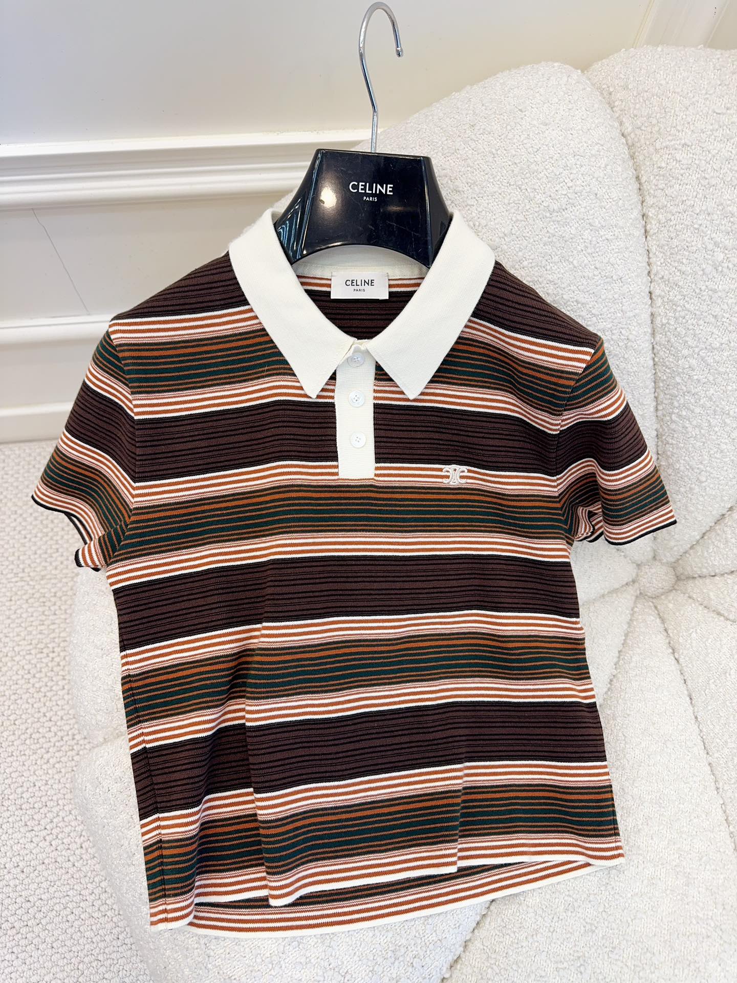 Celine 25 Striped Polo Shirt Brown Cotton