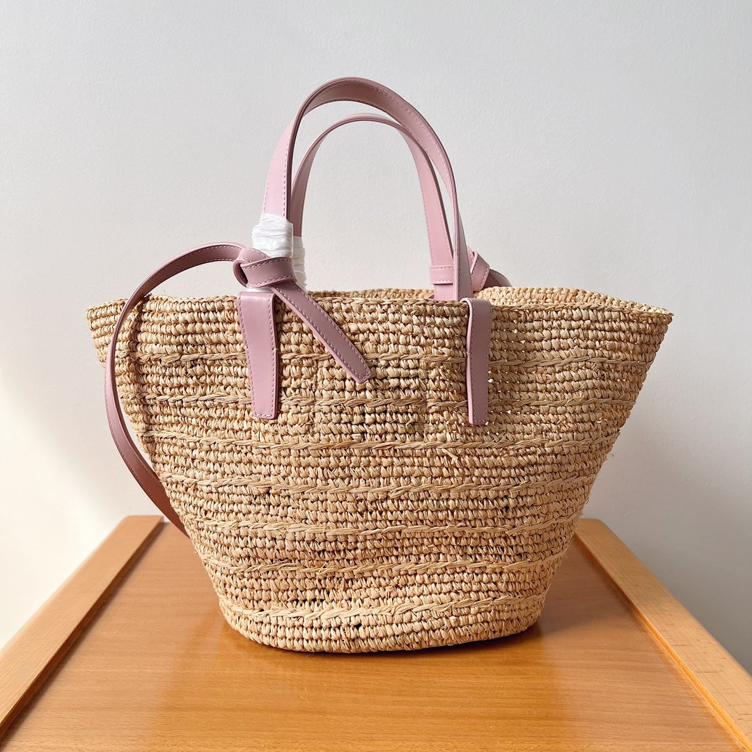 Celine Teen Supple Classic Panier 22cm Pink Calfskin Beige Raffia
