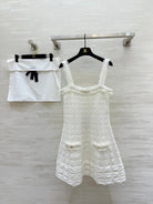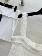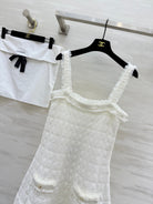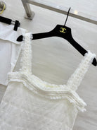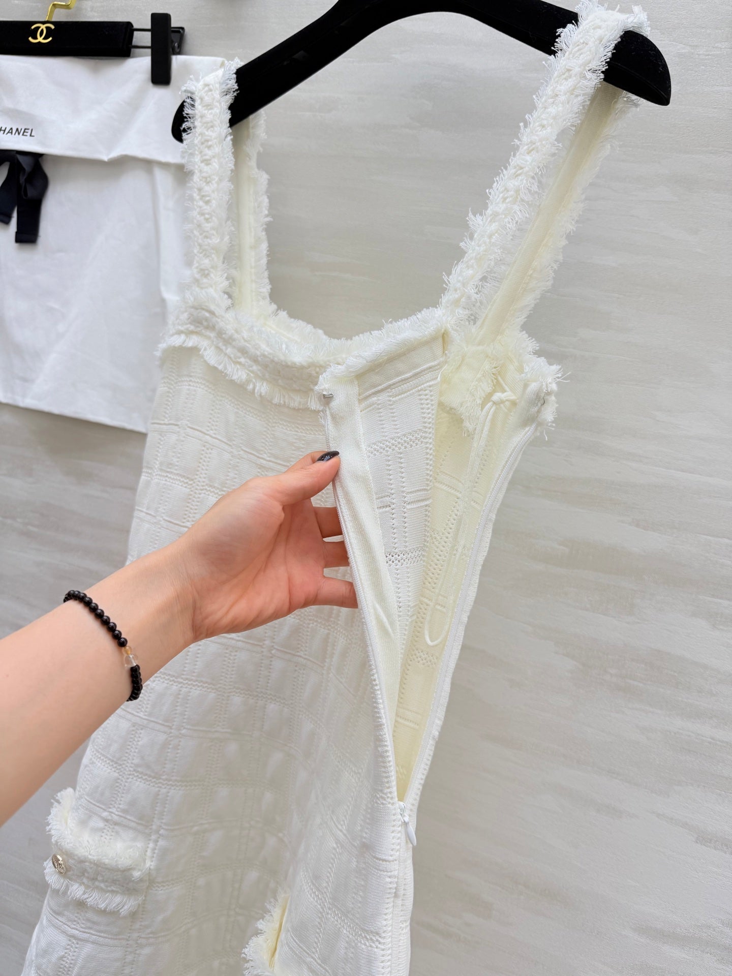 Chanel 2025 Raw-Edge Check Suspender Dress White Cotton 319515