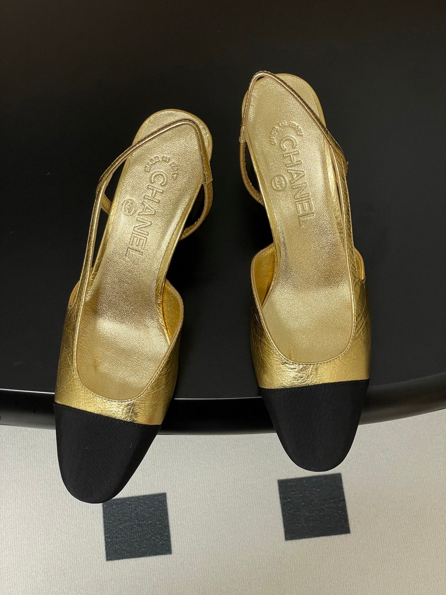 Chanel 2025 Slingback 65mm Gold Metalic Lambskin