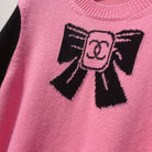 Chanel 25 Bow Sweater Pink Black Wool 317420