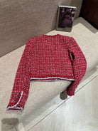Chanel 25 Jacket With Lapel Brooch Red Wool 321196