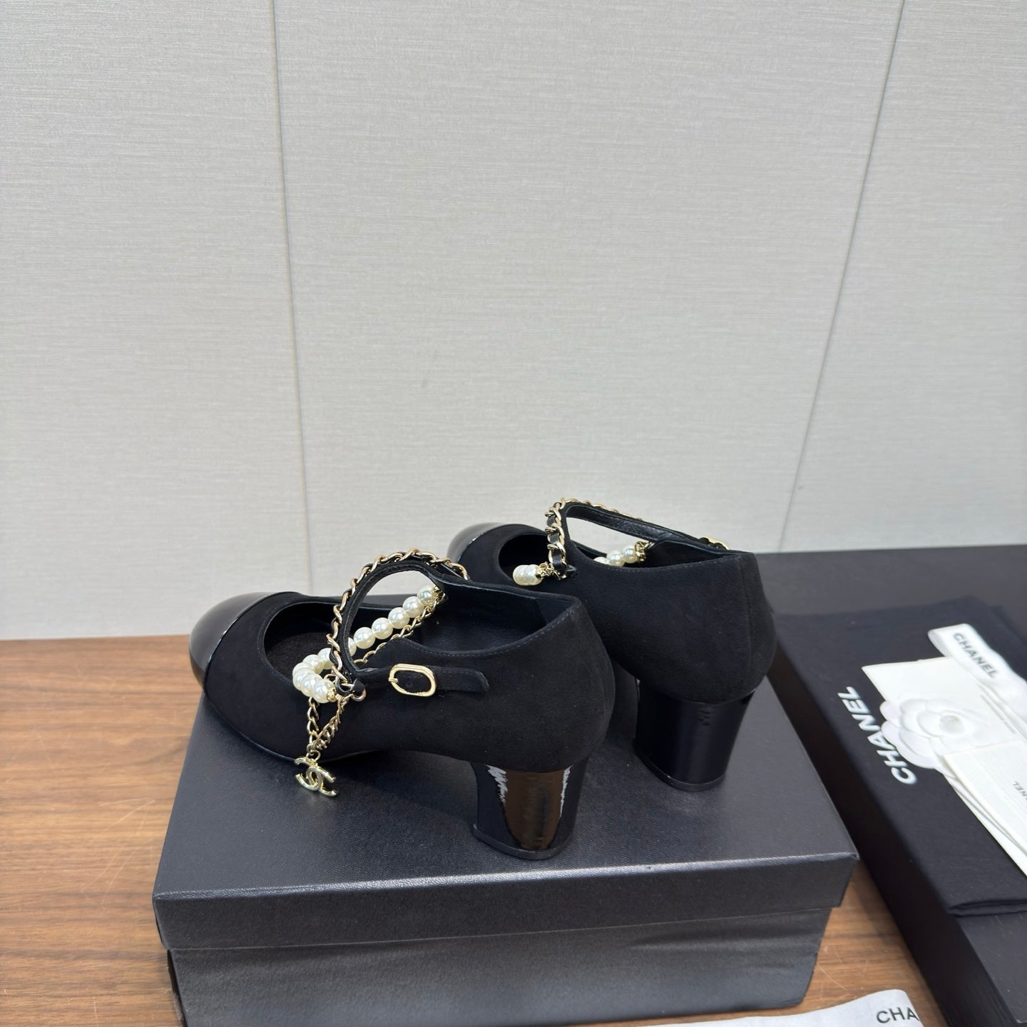 Chanel 25 Mary Jane Ankle Chain Pump Black Suede Cowhide 465599