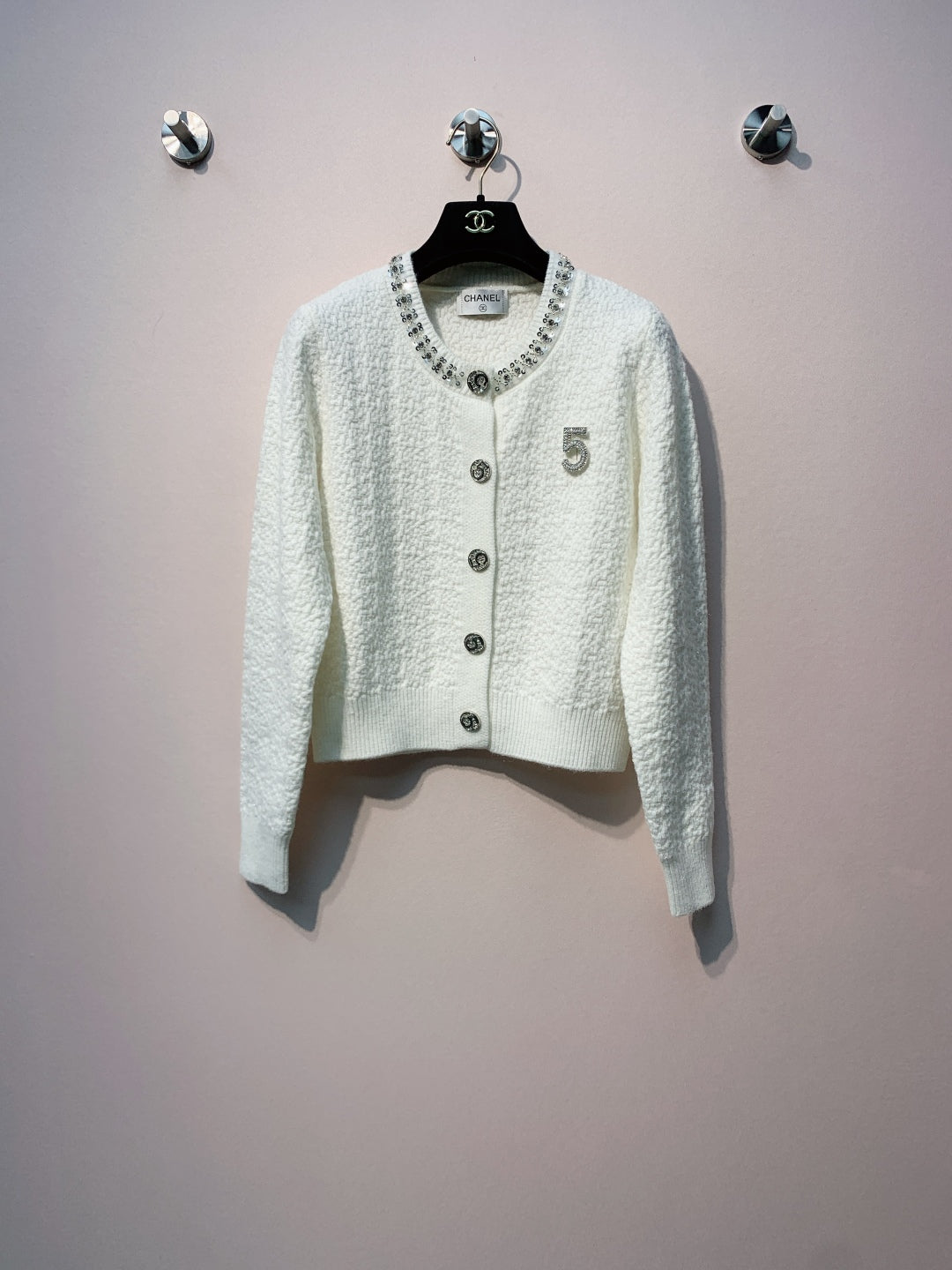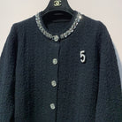 Chanel 25 Round Neck Sequined Custom Button Knit Cardigan Wool 317963