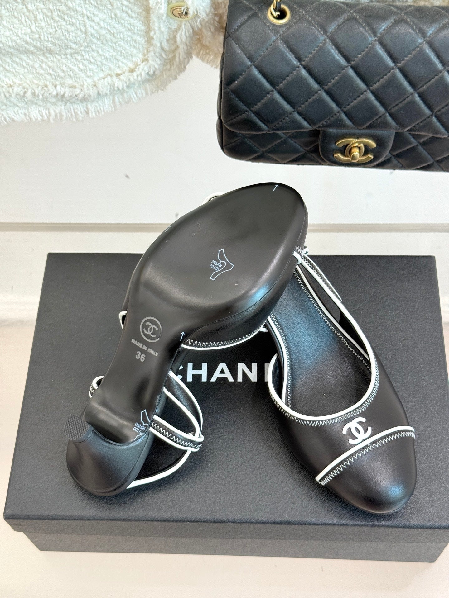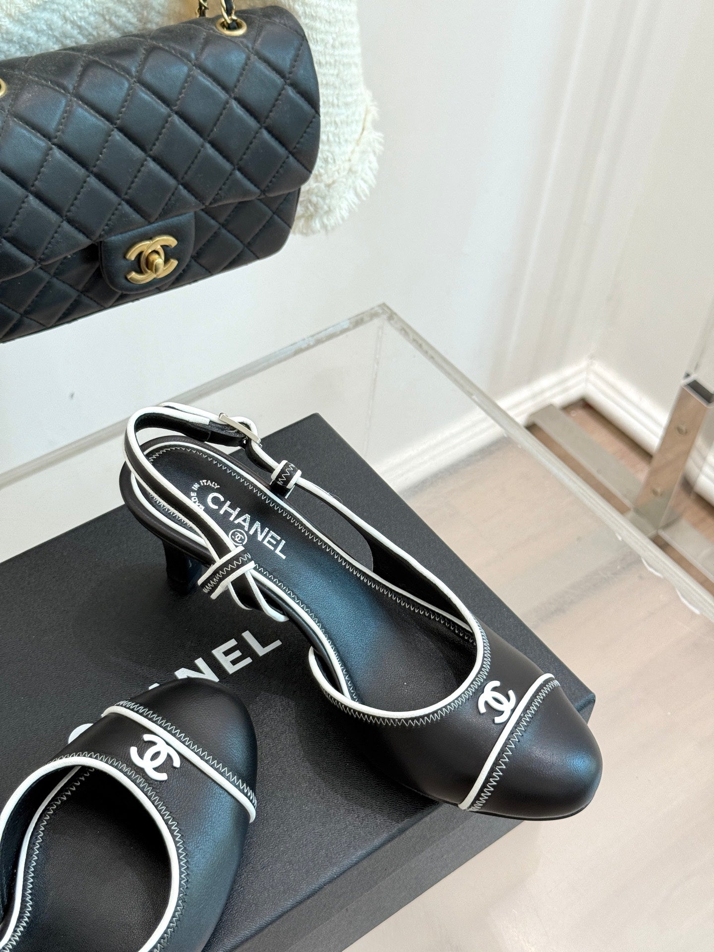 Chanel 25 Slingback Black White Sheepskin 473060