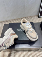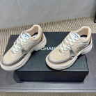 Chanel 25 Sneaker White Beige Silver Mesh Leather 540313