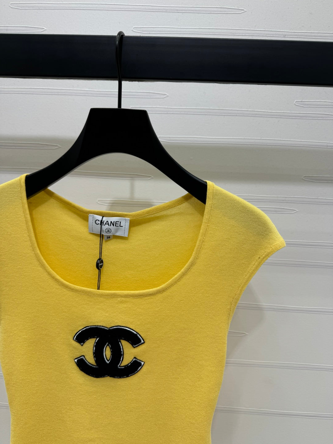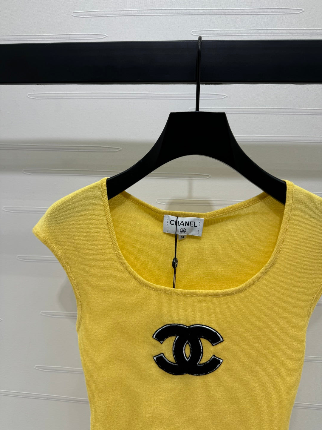 Chanel 25 Yellow Tank Top Square Neck Knitted