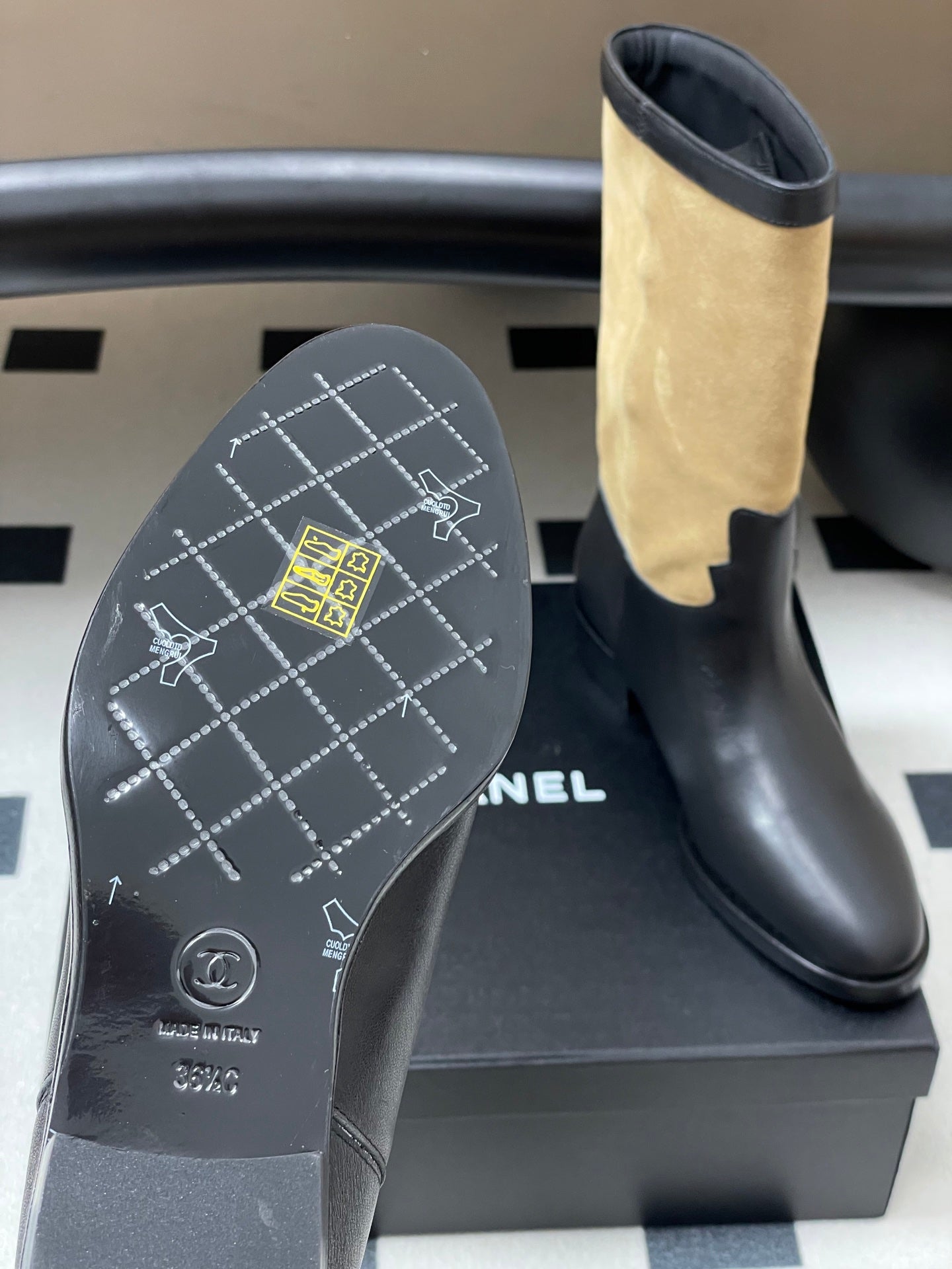 Chanel Boot 25 Beige mix Black Cowhide Suede 175368