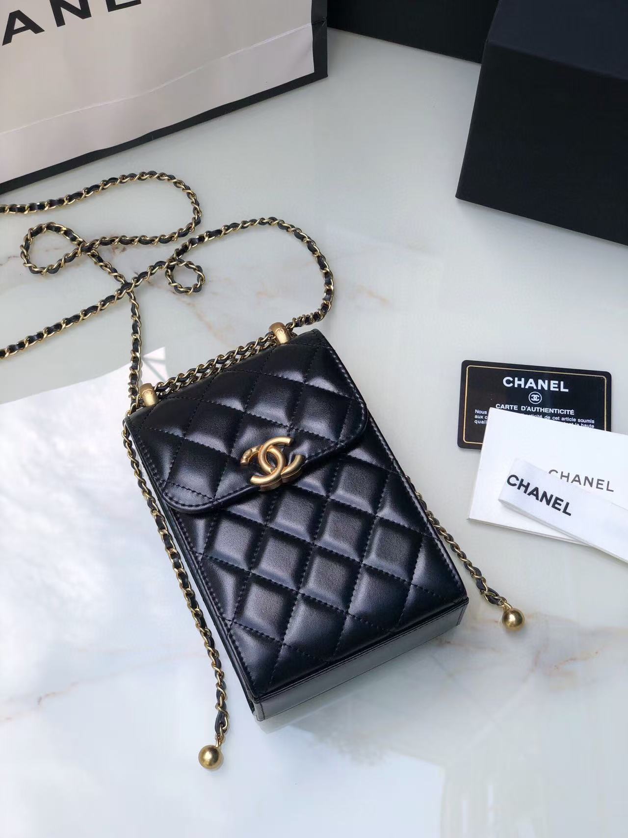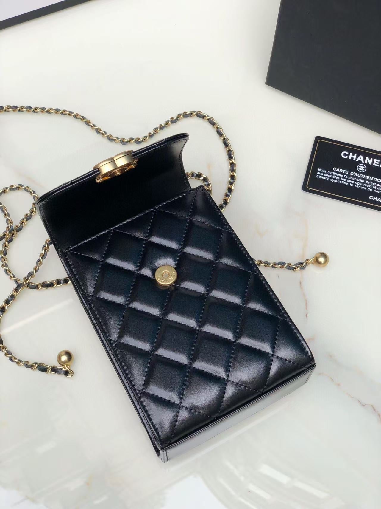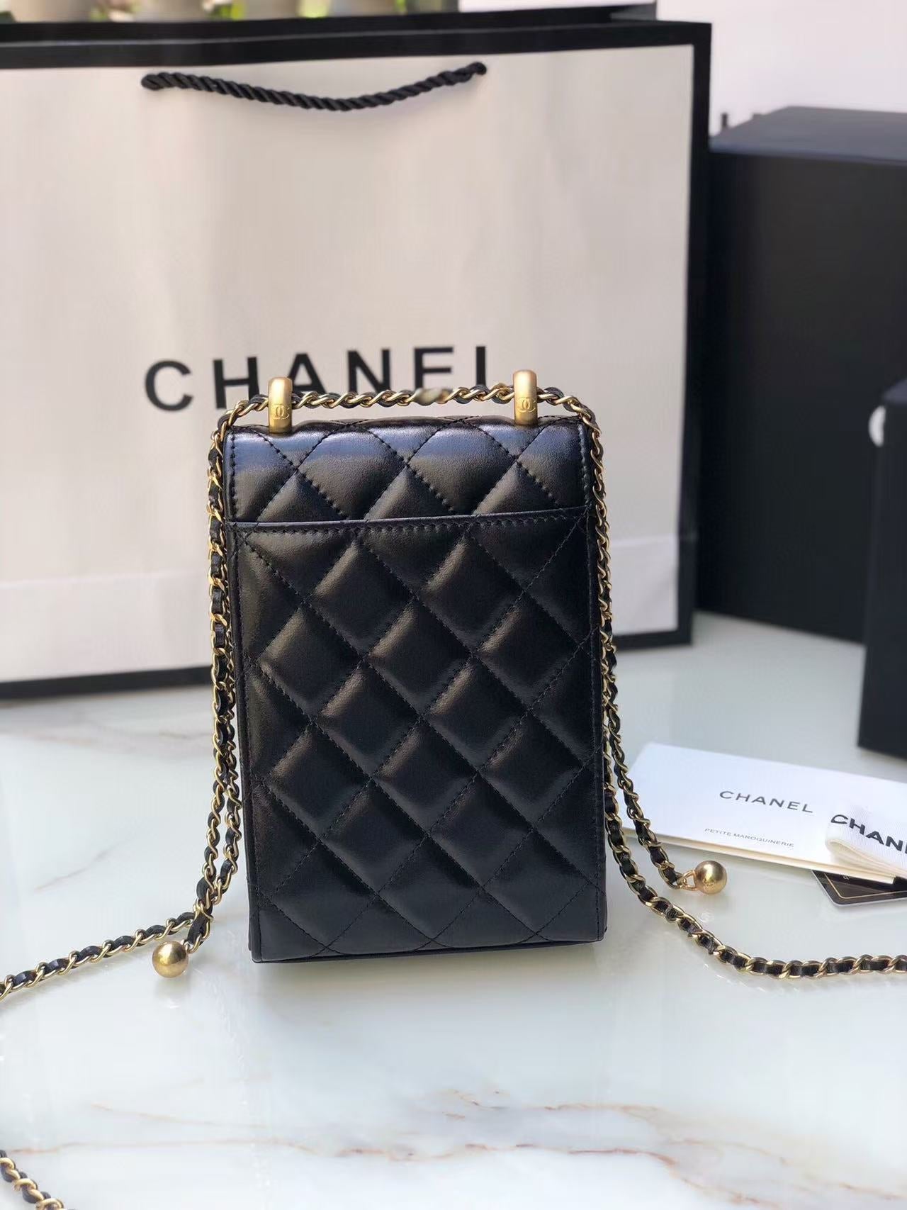 Chanel Phone Chain Bag Black Gold Calfskin