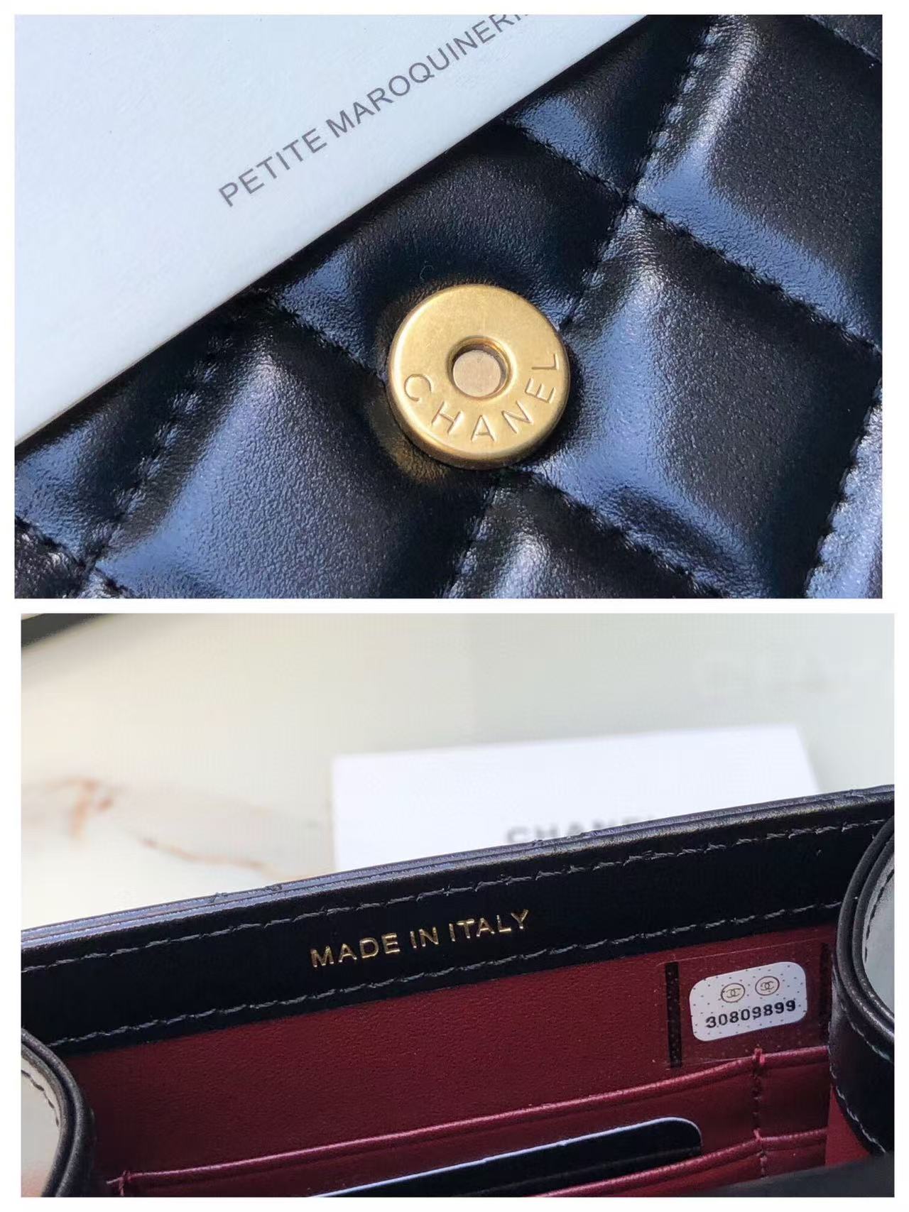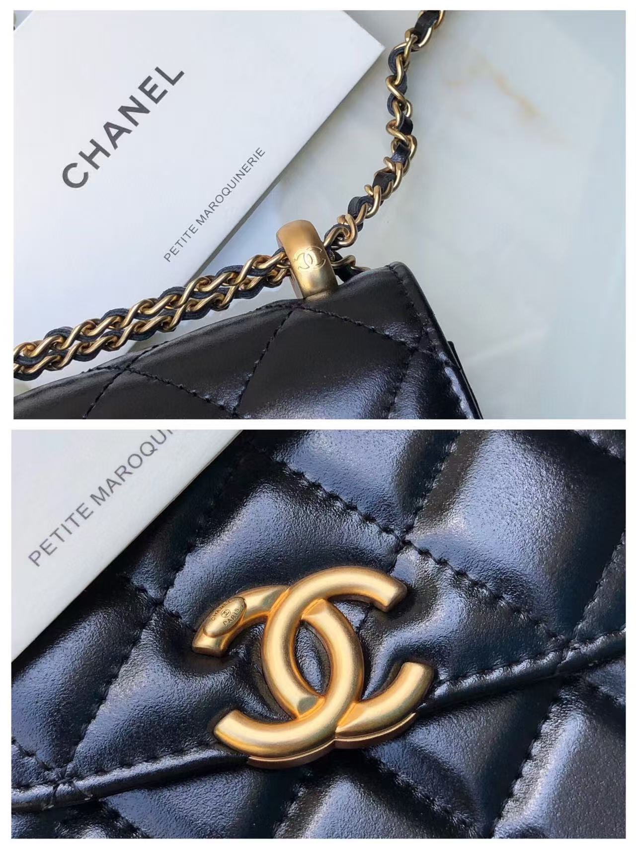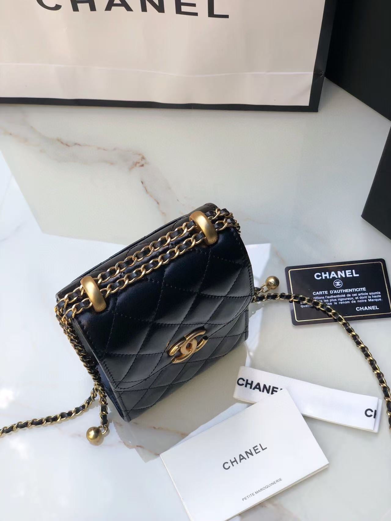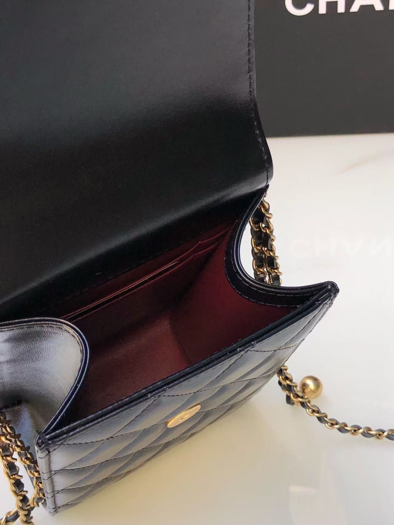 Chanel Phone Chain Bag Black Gold Calfskin