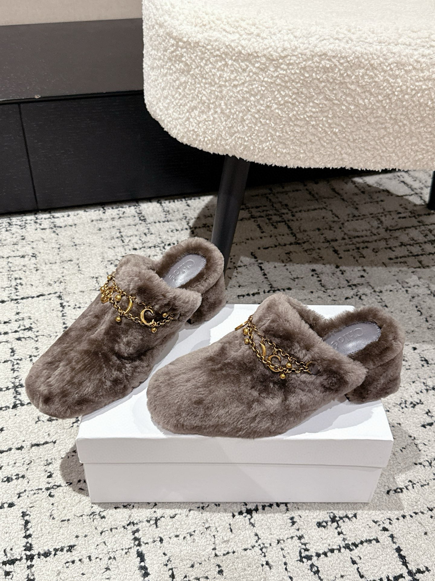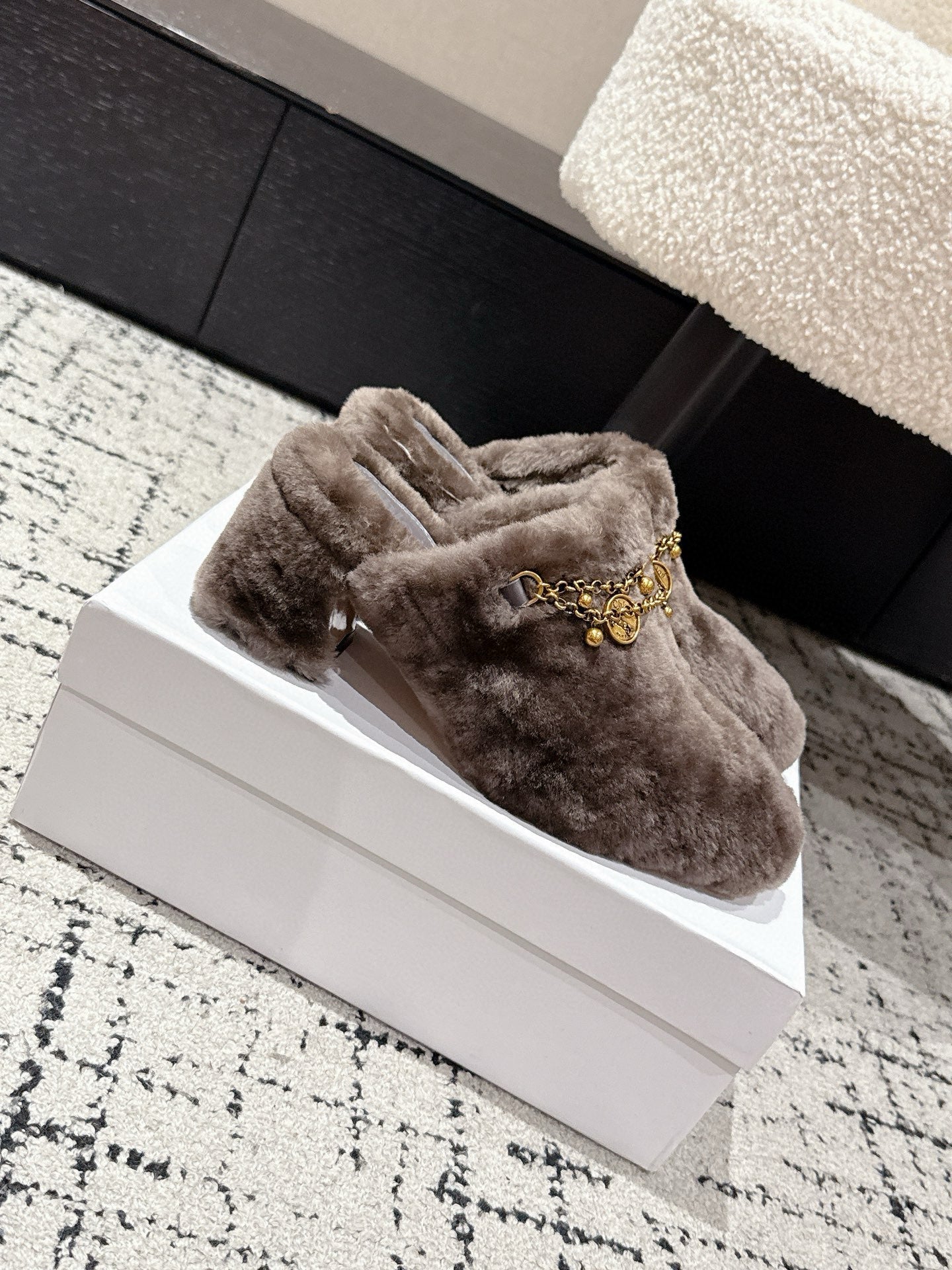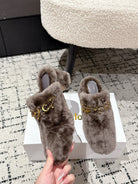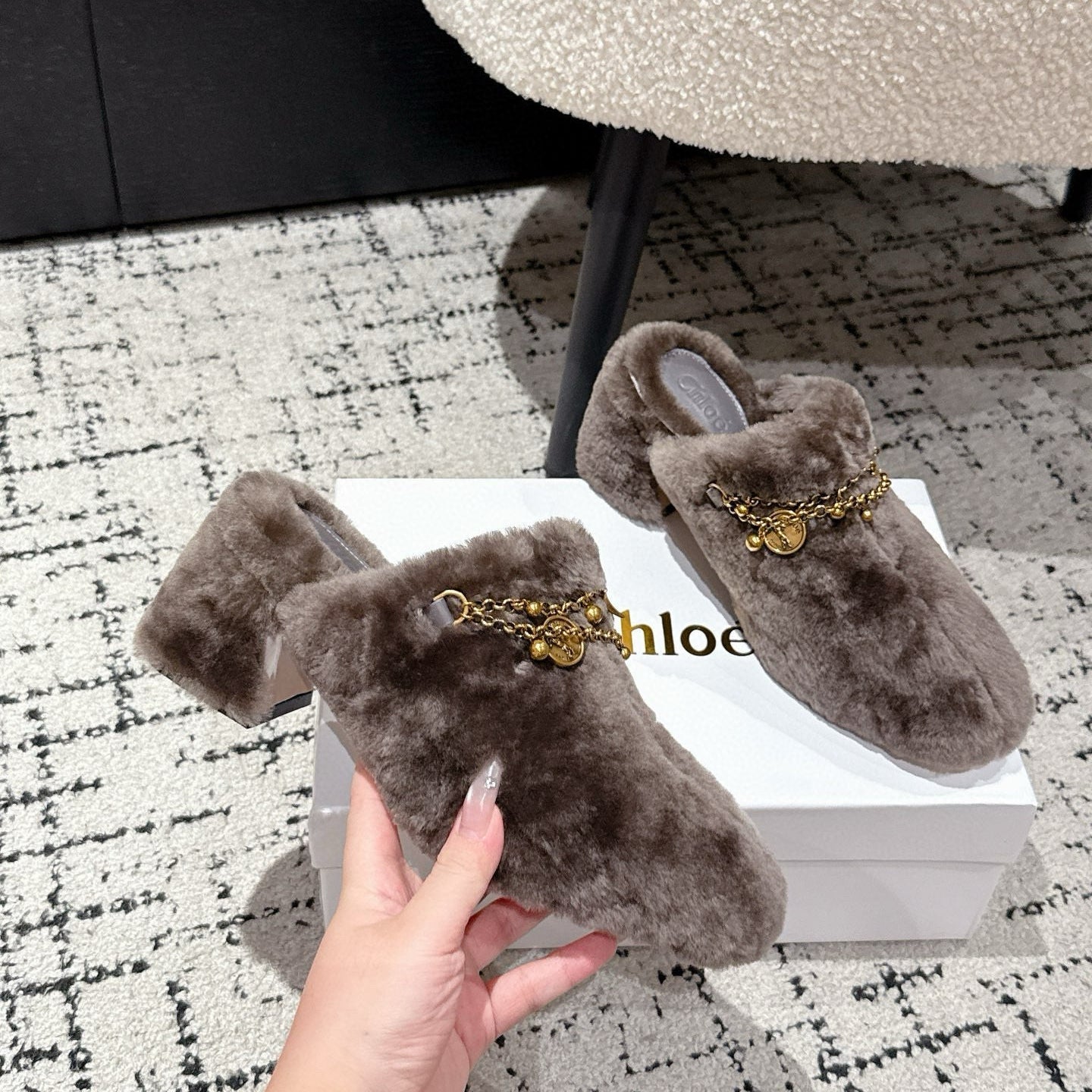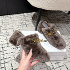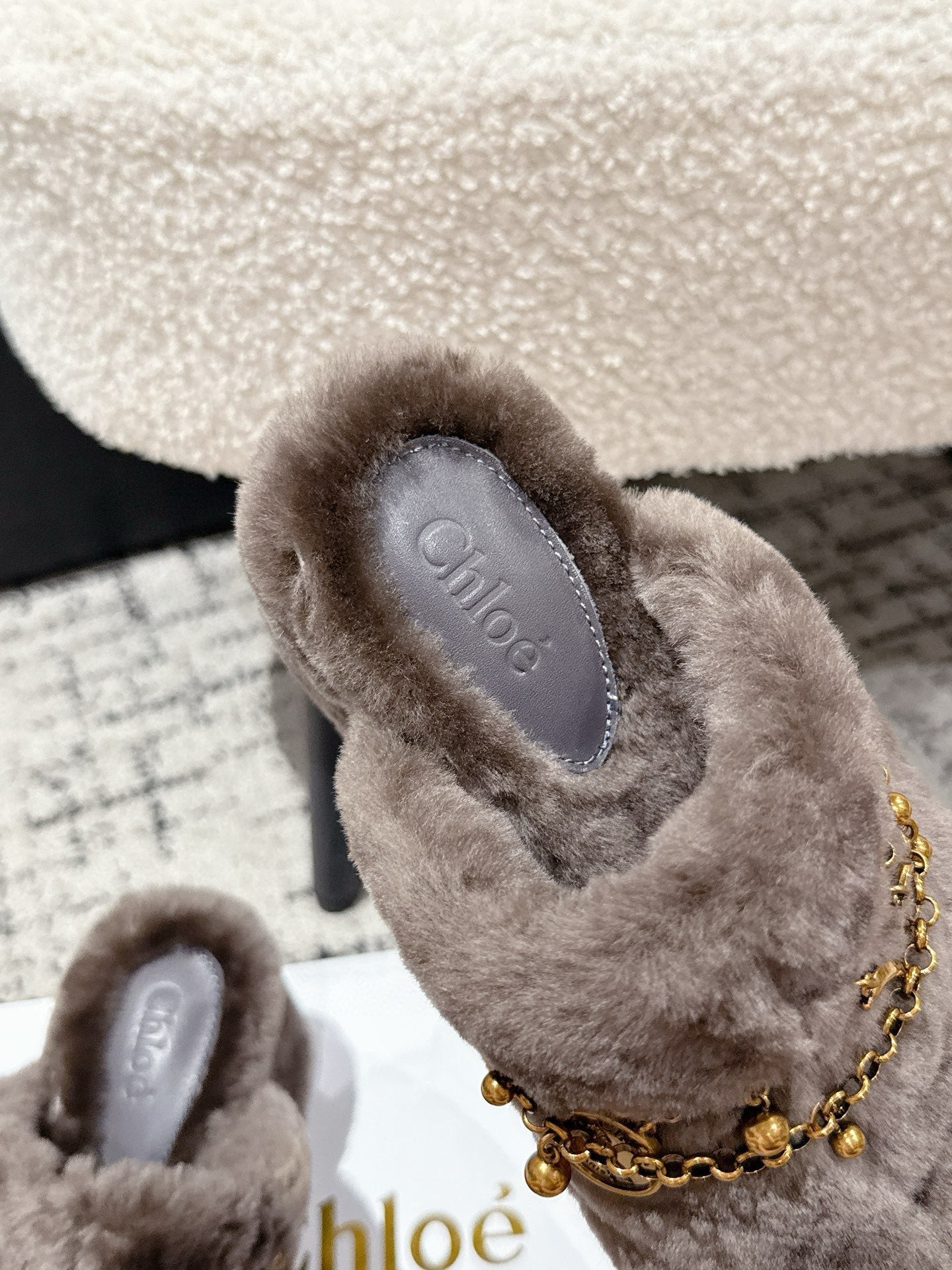 Chloe Covered Fur Slippers Dark Brown Wool 514329
