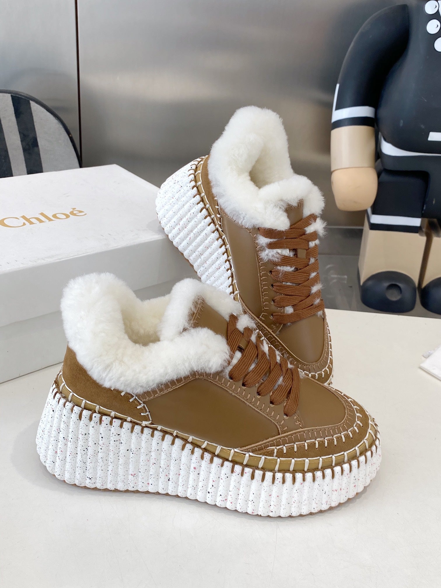 Chloe Nama Sneaker Brown Cowhide Wool 531606