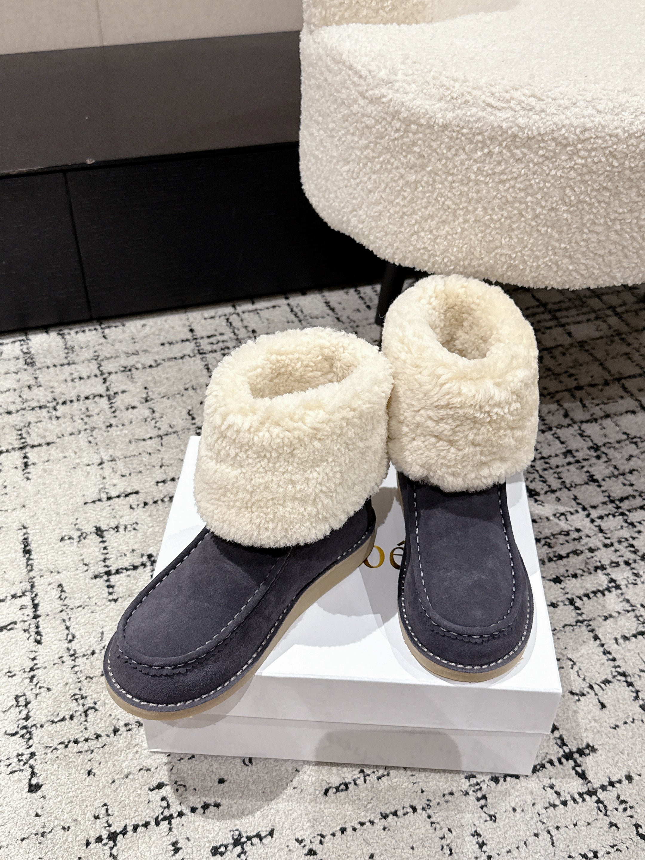 Chloe Snow Boots Gray Suede Wool 514336