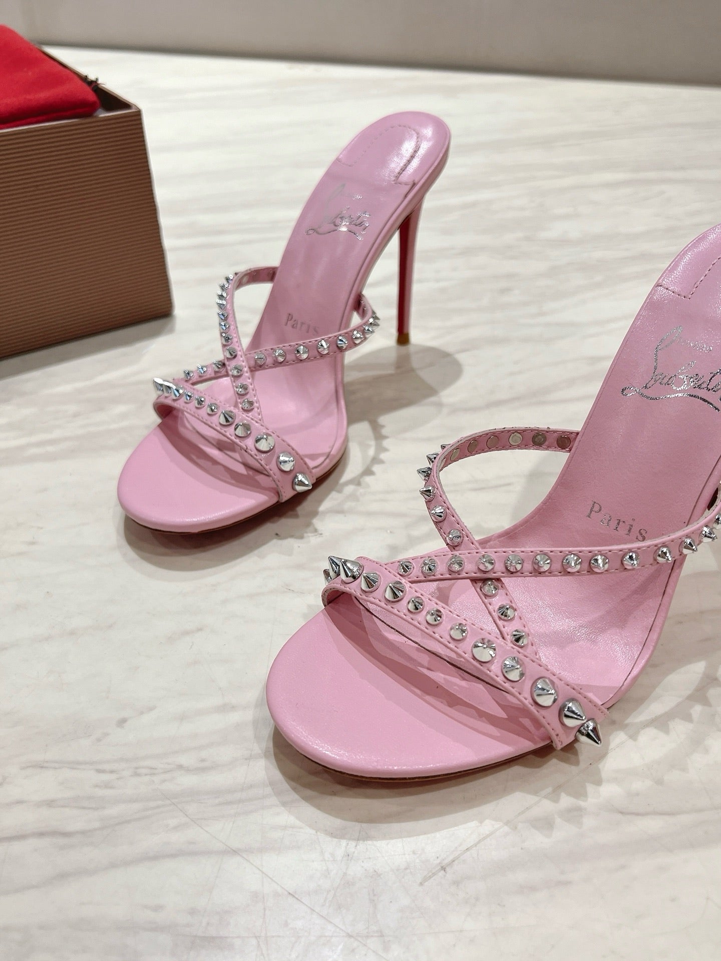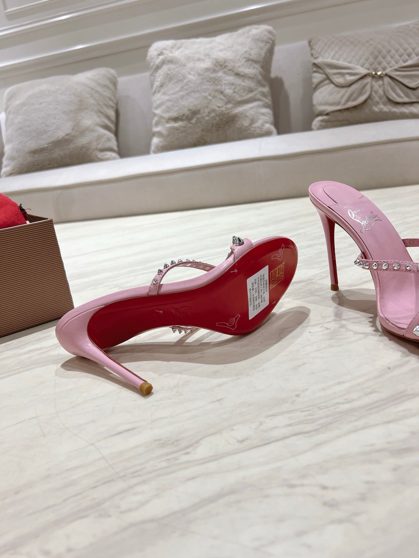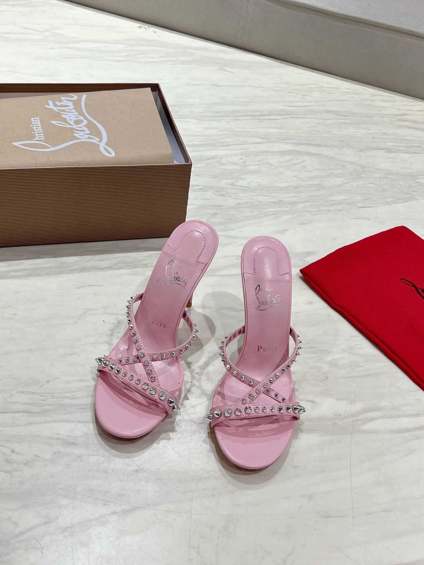 CL 25 Cross-Strap Slippers Pink Gloss Calf Patent Leather Rivets 314922