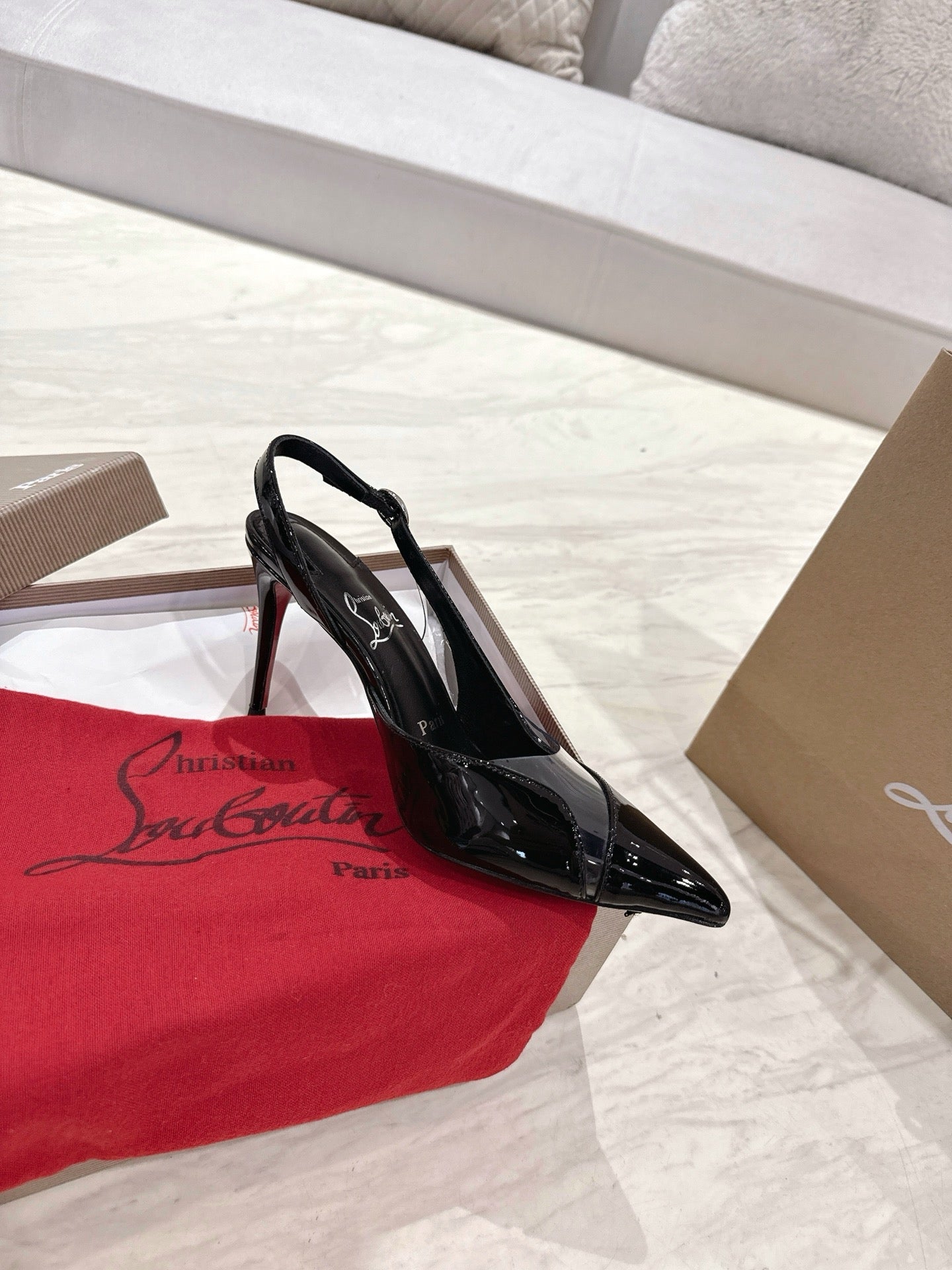 CL 25 Slingback Sandals Black PVC Gloss Calfskin 307531